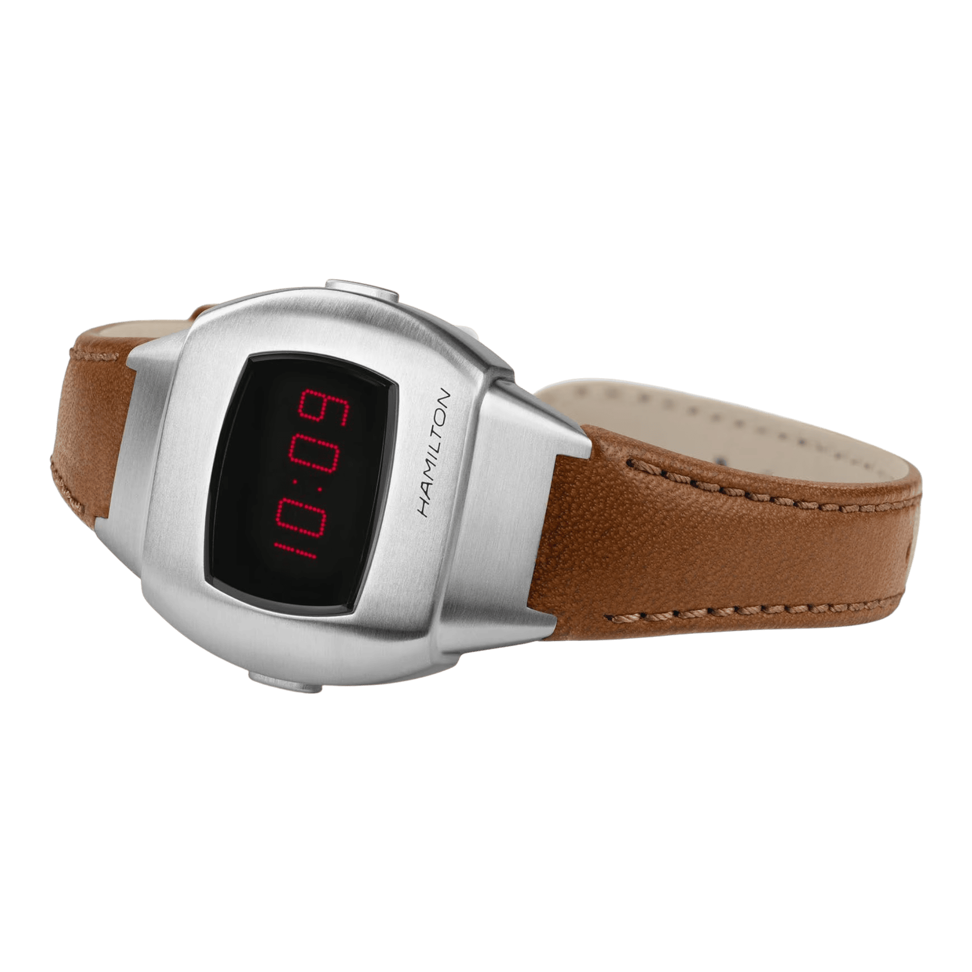 In 1970, Hamilton jostled the codes of watchmaking with the launch of the Hamilton Pulsar. Fifty years later, the Hamilton PSR pays tribute to the revolutionary launch of the first digital watch. With its hybrid display and stainless steel case, this milestone is today a return to the future.