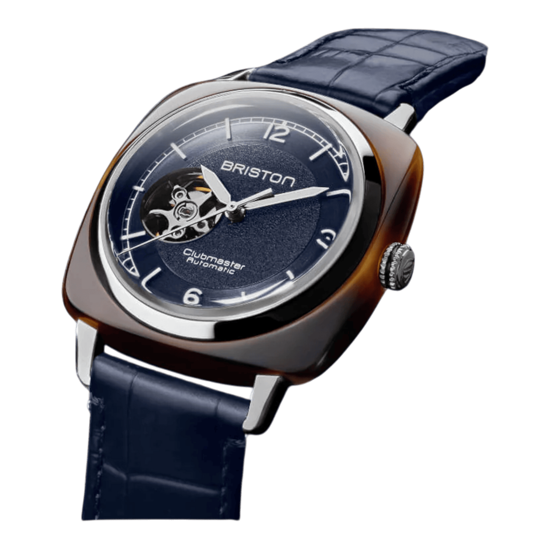 Montre automatique Clubmaster Legend Classic Open en acétate – 39 mm La Clubmaster Legend Classic Open est une montre automatique au design élégant et intemporel. Son boîtier de 39 mm en acier inoxydable poli miroir met en valeur un cadran Bleu raffiné, doté d’une partie centrale poudrée mate et d’une minuterie chemin de fer pour une excellente lisibilité. Cette montre affiche les heures, minutes et secondes, avec une ouverture “Open Heart” à 9 heures laissant apparaître le balancier, signature du savoir-faire mécanique. Les aiguilles avec inserts luminescents Superluminova® C1 garantissent une lecture optimale, même dans l’obscurité. Protégée par une glace saphir ultra-résistante, la montre est étanche jusqu’à 100 mètres (10 ATM), ce qui la rend adaptée à un usage quotidien. Elle est montée sur un bracelet de 20 mm en cuir noir imitation alligator, apportant une touche classique et sophistiquée. Animée par un mouvement automatique japonais NH38A, la Clubmaster Legend Classic Open allie précision, fiabilité et esthétique horlogère. |