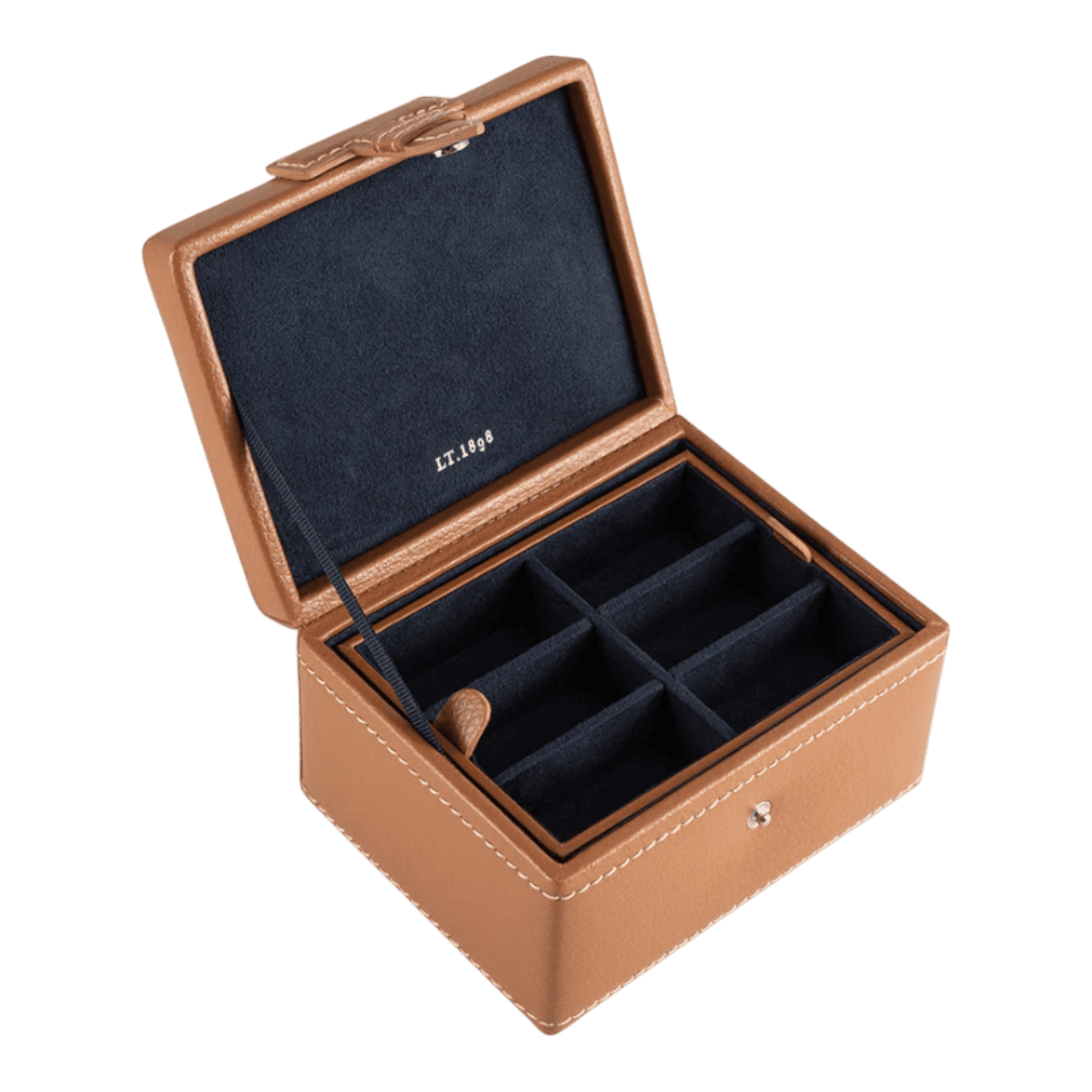 Box Cowhide cufflinks and velvet lining. Tone marking on tone and clasp signature.