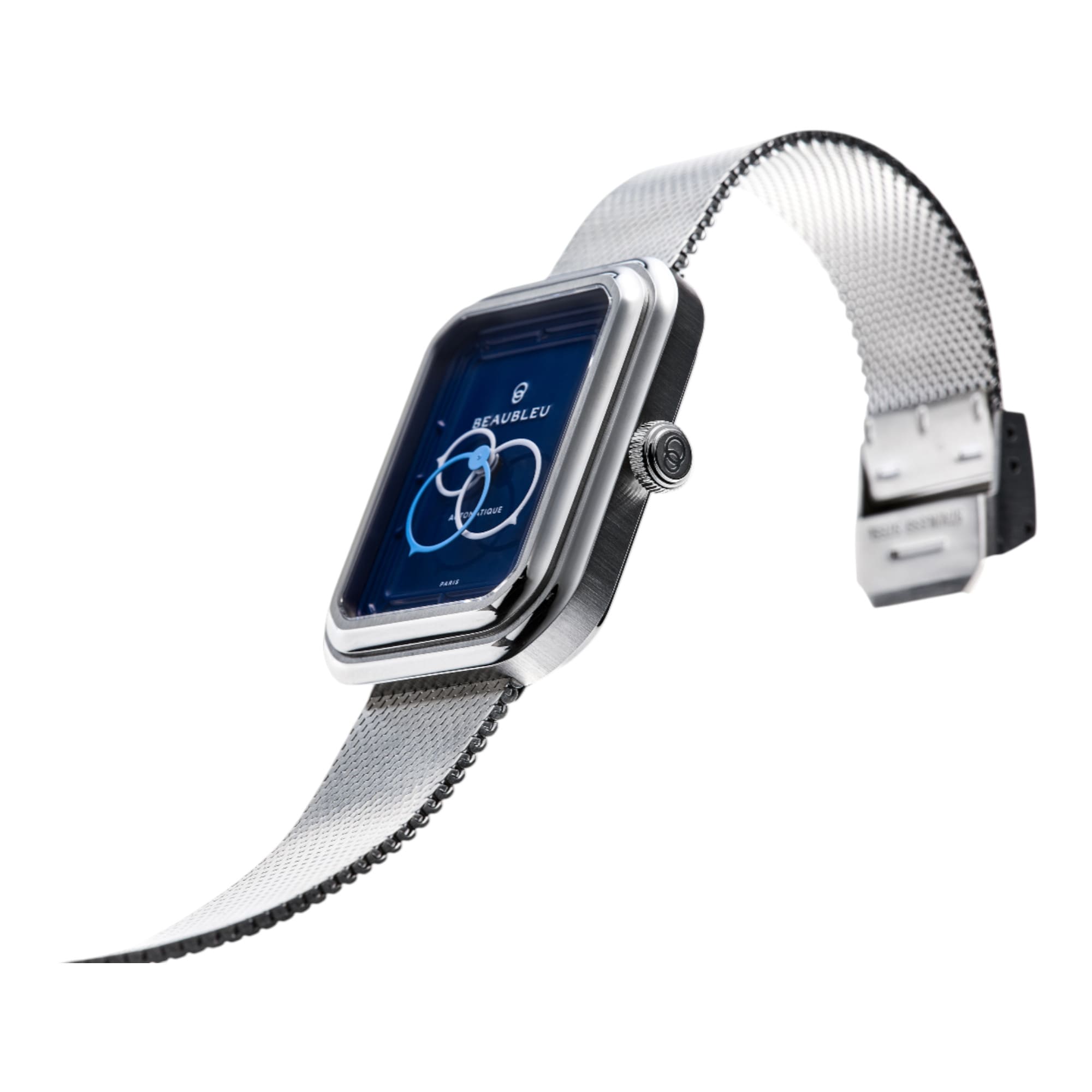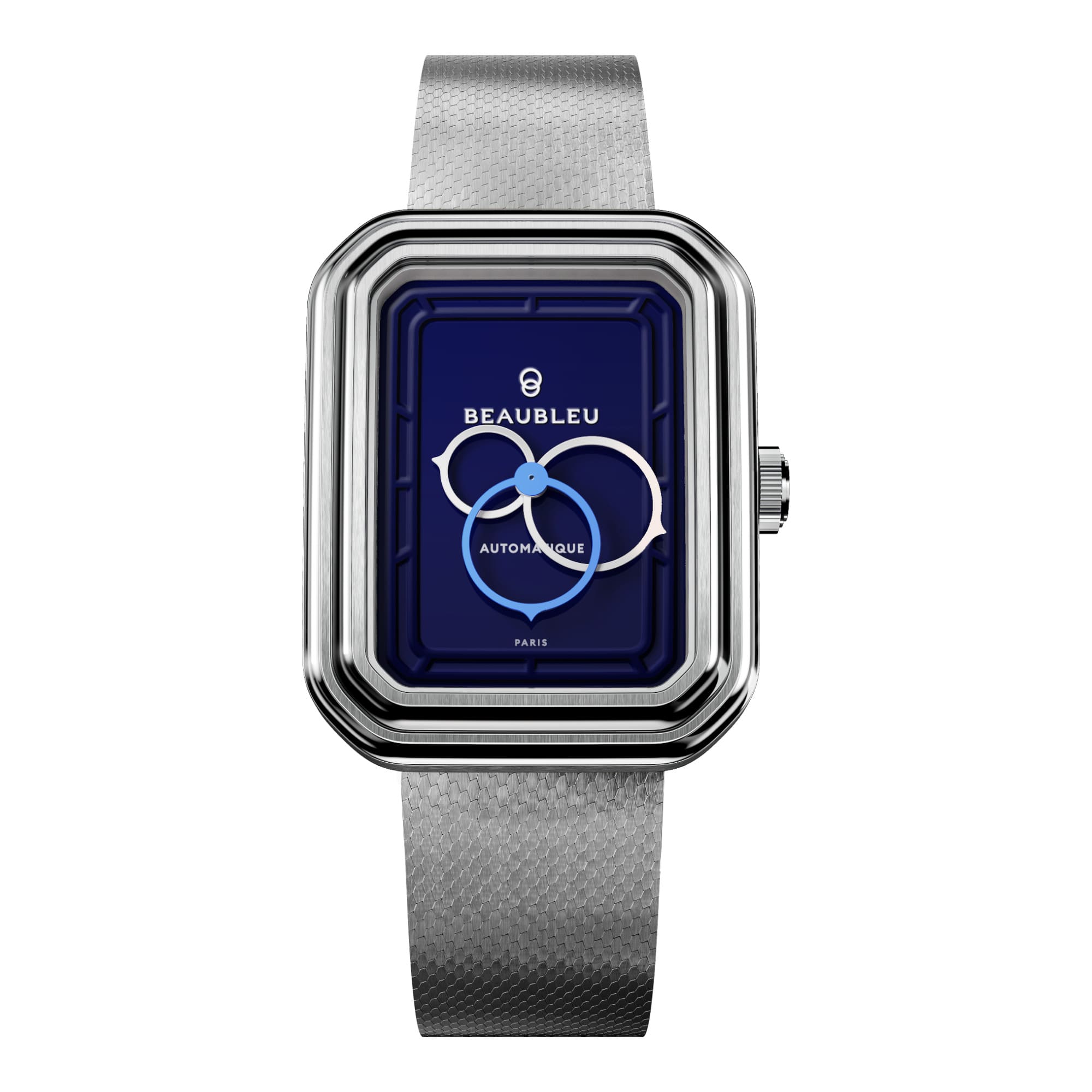 Beaubleu Ecce Figura Smalt – La quadrature des cerclesMontre automatique unisexe | Cadran cachet de cire bleu | Assemblée à ParisLes ronds dans les carrésPremière montre de forme signée Beaubleu, la Ecce Figura Smalt incarne l’essence même de la Maison : une approche horlogère à la fois architecturale, poétique et légèrement impertinente. Son boîtier semi-octogonal, signature discrète mais assumée, joue sur les contrastes de finitions polies et brossées pour révéler l’élégance de ses courbes. La lunette concave et le verre saphir créent un jeu de lumière fascinant sur le cadran bleu smalt, inspiré des anciens cachets de cire, entre tradition et modernité. Mouvement & précisionLa montre est animée par un mouvement automatique Miyota 9015, reconnu pour sa fiabilité, sa finesse (3,9 mm) et sa réserve de marche de 42 heures. Il se remonte naturellement au fil de vos gestes, et incarne un équilibre parfait entre technicité et finesse. Designé et assemblé à ParisImaginée et dessinée dans les ateliers parisiens de Beaubleu, chaque Ecce Figura est assemblée à la main à Paris, à quelques pas du showroom de la Maison. Ce savoir-faire local garantit une qualité de fabrication irréprochable et une proximité avec les clients. Vous pouvez même personnaliser le fond de boîte lors de votre commande, pour rendre votre montre unique et riche de sens. |