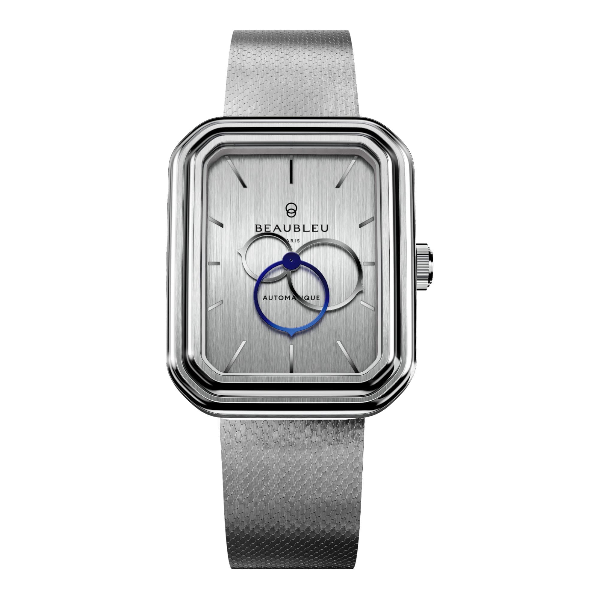 Beaubleu Ecce Figura Vesperal – La quadrature des cerclesMontre automatique unisexe | Cadran Brossé | Assemblée à ParisLes ronds dans les carrésPremière montre de forme signée Beaubleu, la Ecce Figura vesperal incarne l’essence même de la Maison : une approche horlogère à la fois architecturale, poétique et légèrement impertinente. Son boîtier semi-octogonal, signature discrète mais assumée, joue sur les contrastes de finitions polies et brossées pour révéler l’élégance de ses courbes. La lunette concave et le verre saphir créent un jeu de lumière fascinant sur le cadran brossé, inspiré des anciens cachets de cire, entre tradition et modernité. Mouvement & précisionLa montre est animée par un mouvement automatique Miyota 9015, reconnu pour sa fiabilité, sa finesse (3,9 mm) et sa réserve de marche de 42 heures. Il se remonte naturellement au fil de vos gestes, et incarne un équilibre parfait entre technicité et finesse. Designé et assemblé à ParisImaginée et dessinée dans les ateliers parisiens de Beaubleu, chaque Ecce Figura est assemblée à la main à Paris, à quelques pas du showroom de la Maison. Ce savoir-faire local garantit une qualité de fabrication irréprochable et une proximité avec les clients. Vous pouvez même personnaliser le fond de boîte lors de votre commande, pour rendre votre montre unique et riche de sens. |