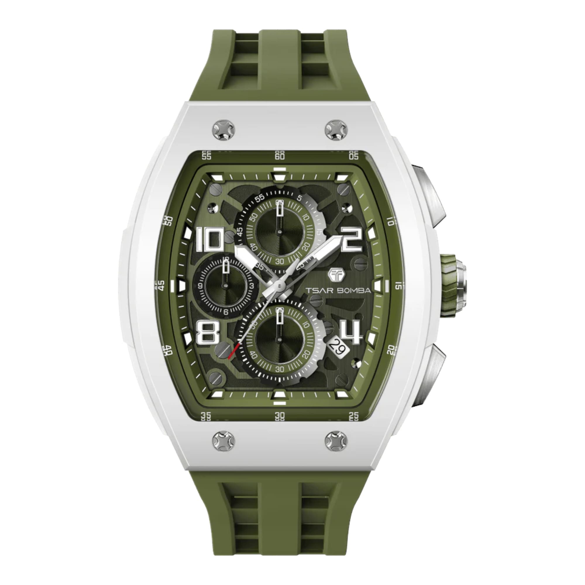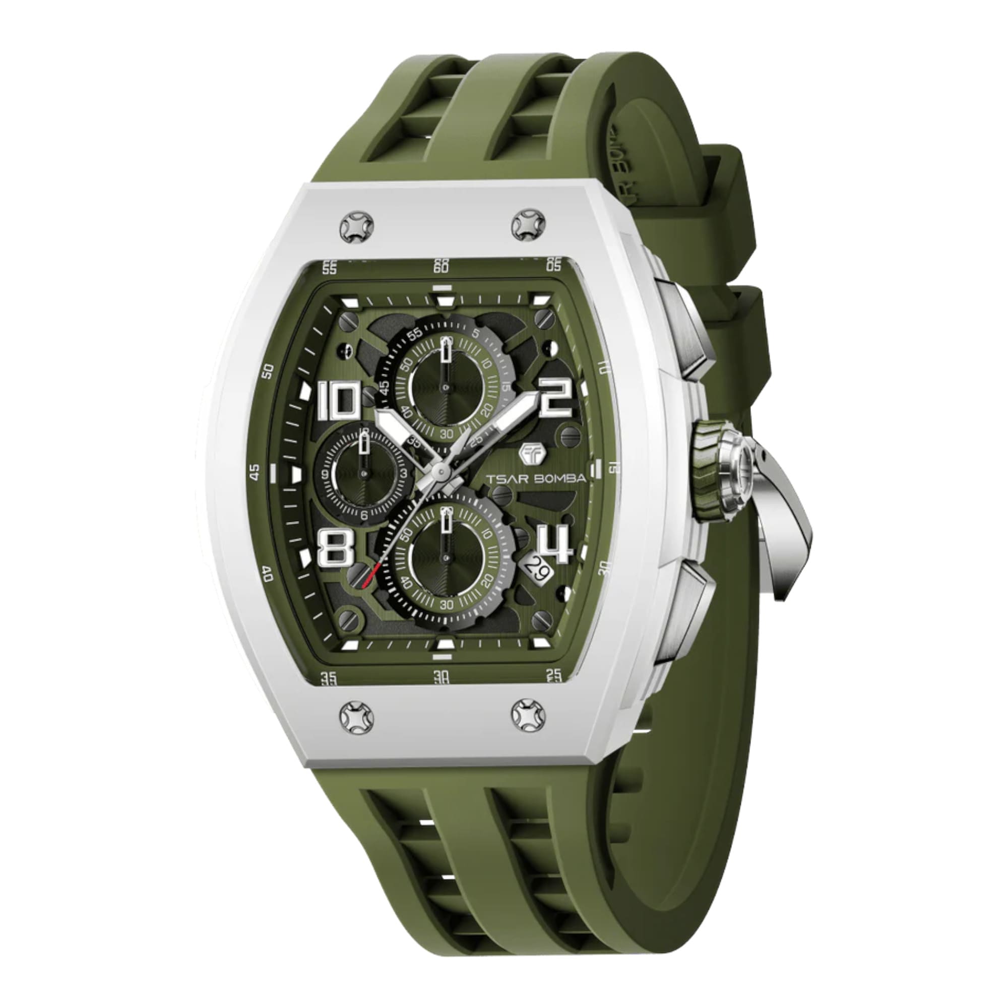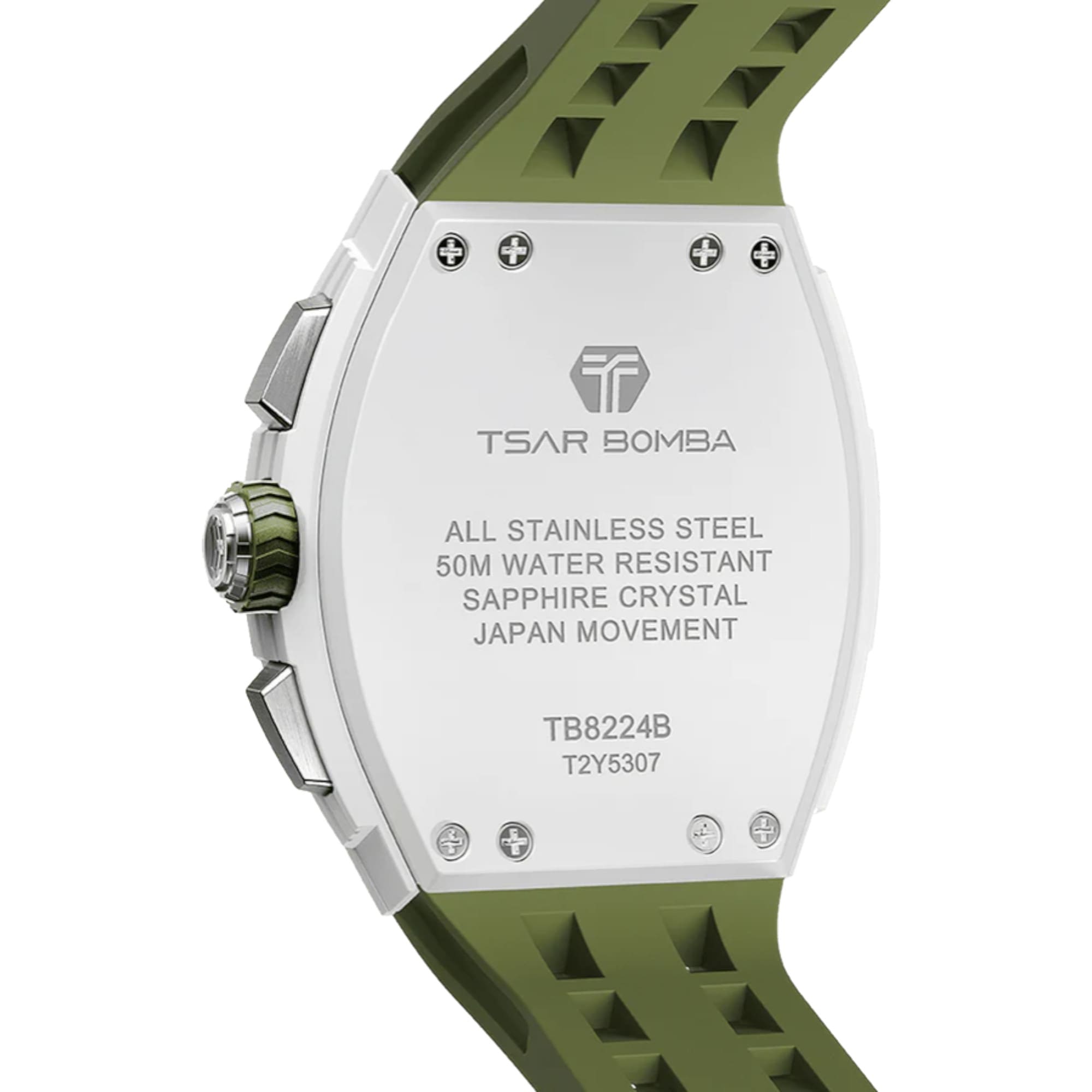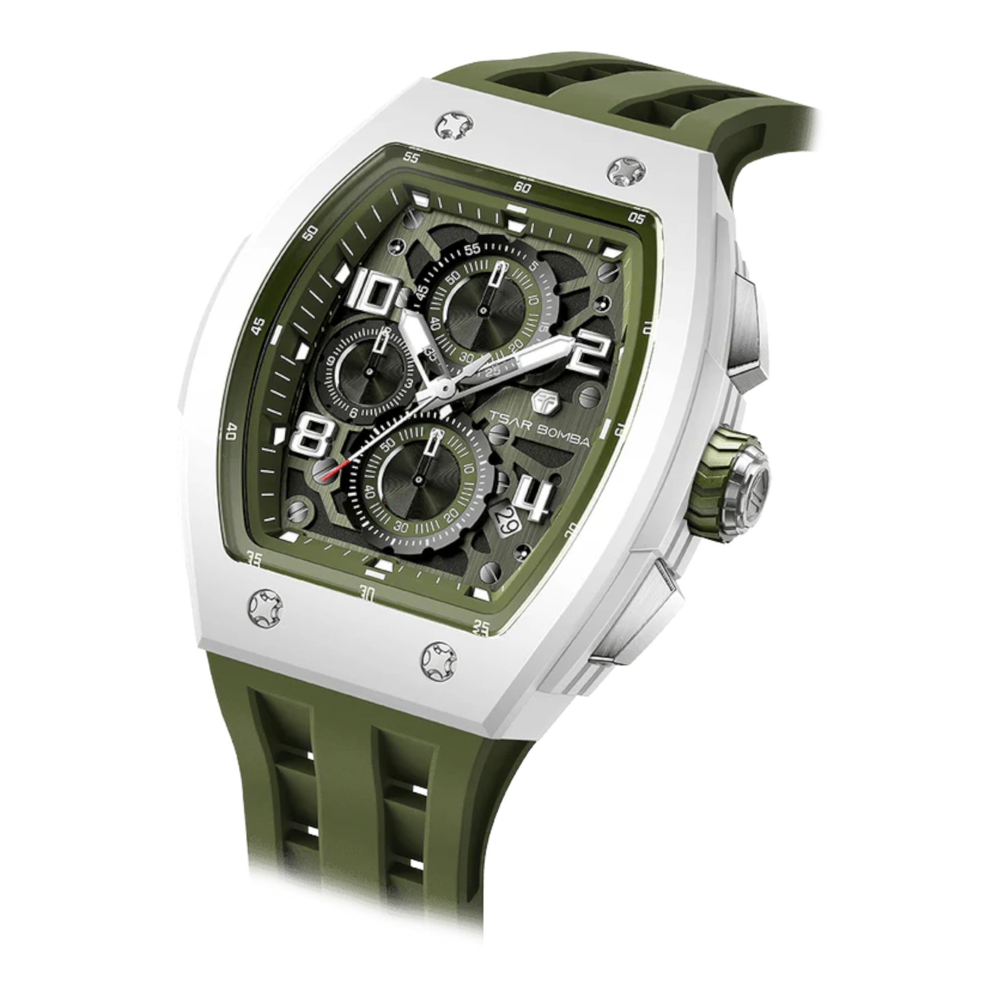 TSAR BOMBA Elemental Quartz TB8224B – Montre Chronographe au Design DynamiqueDesign moderne et apparence uniqueLa montre TSAR BOMBA Elemental Quartz TB8224B se distingue par un design épuré et dynamique, mêlant parfaitement style sportif contemporain et finitions texturées raffinées. Son esthétique audacieuse attire immédiatement le regard et affirme la personnalité de celui ou celle qui la porte. Idéale pour un usage quotidien comme pour les activités sportives, cette montre incarne un équilibre parfait entre performance, modernité et élégance masculine. Cadran chronographe multifonctionSon cadran chronographe à trois compteurs offre une lecture claire et une composition visuelle riche en détails. L’aiguille centrale des secondes est dédiée à la fonction chronographe, tandis que la trotteuse est intelligemment placée sur un sous-compteur pour un affichage précis du temps. Ce design technique souligne la précision du mouvement quartz tout en apportant une touche esthétique distinctive. Boîtier robuste en acier inoxydableLe boîtier en acier inoxydable de haute qualité assure une excellente résistance à la corrosion et à l’usure. Solide et durable, il protège efficacement le mouvement tout en offrant à la montre une finition métallique élégante et contemporaine. Bracelet en silicone confortable et sportifDotée d’un bracelet en silicone souple et hautement élastique, la TB8224B garantit un confort optimal au poignet. Doux pour la peau et parfaitement ajusté, il accompagne facilement tous les mouvements et résiste aux activités sportives intensives. Ce bracelet allie confort, résistance et style urbain moderne. |