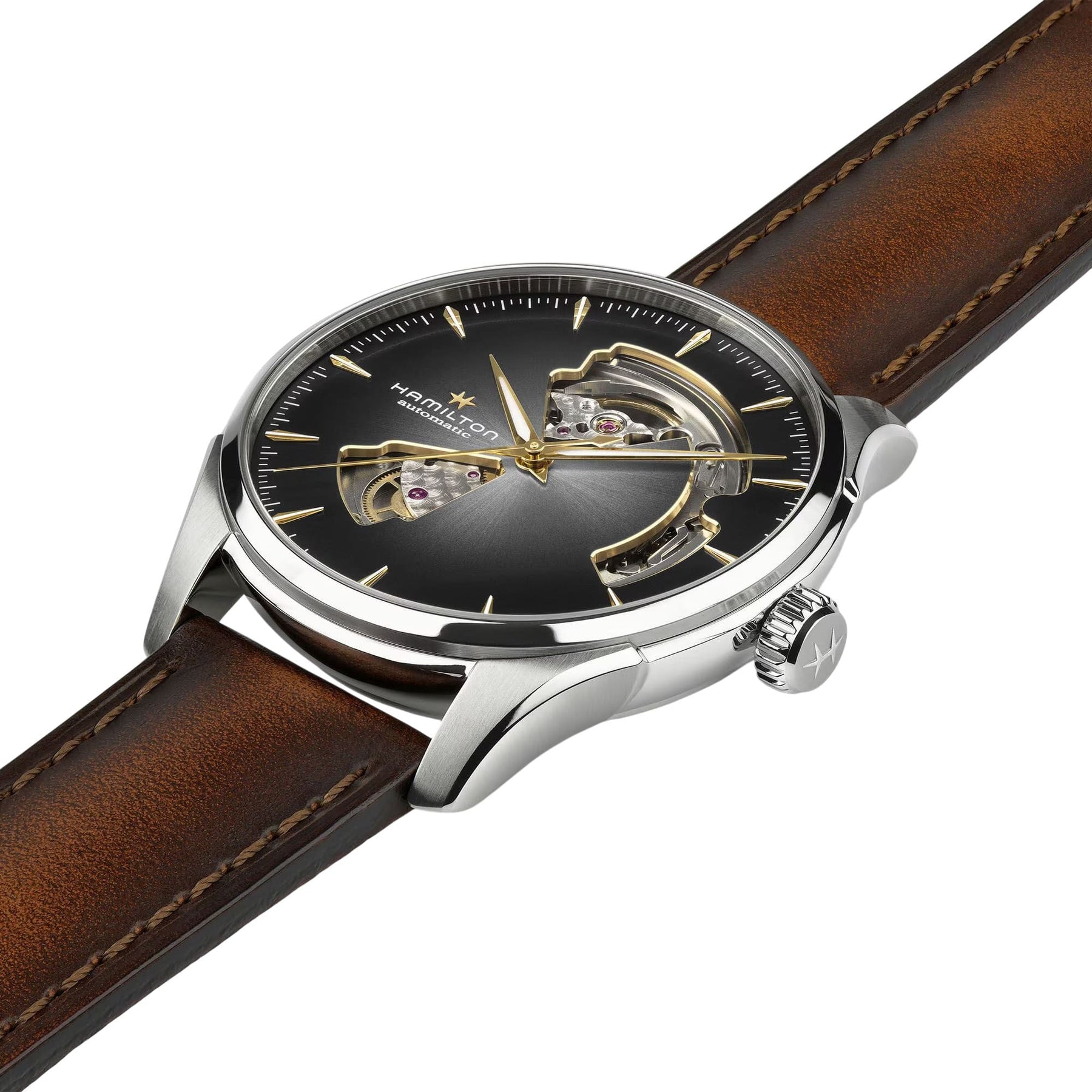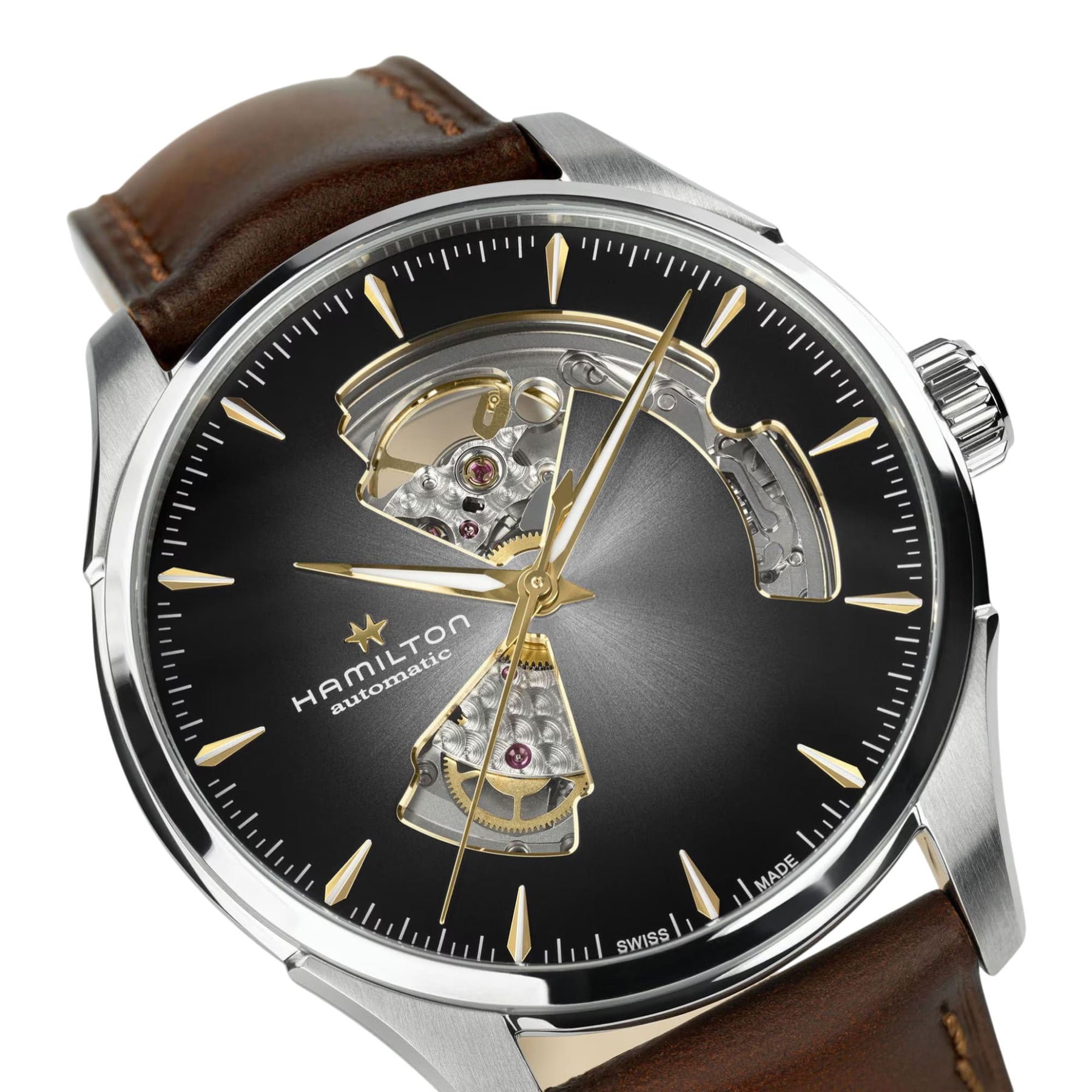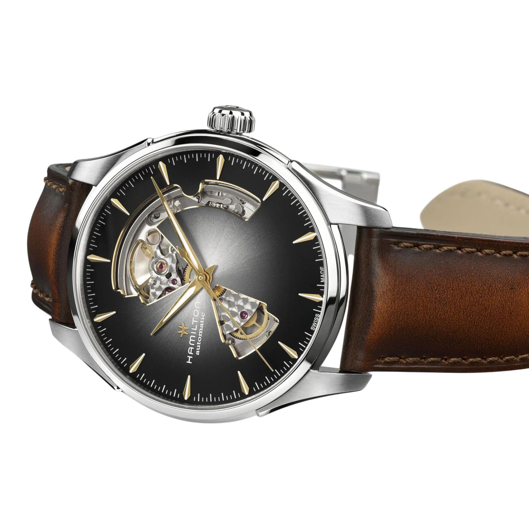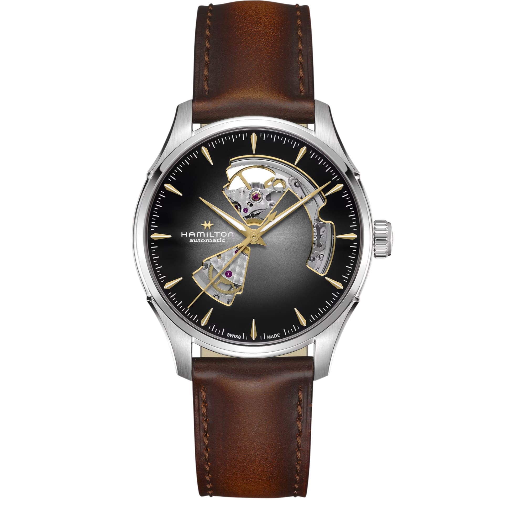 The JazzMaster Open Heart 42 mm watch represents the perfect balance between tradition and innovation. Its meticulous openwork design suggests our Swiss automatic movement under a silver dial with indexes and blue needles. Affirm your personality with a matching blue leather bracelet, or adopt a more discreet style by opting for the stainless steel bracelet.