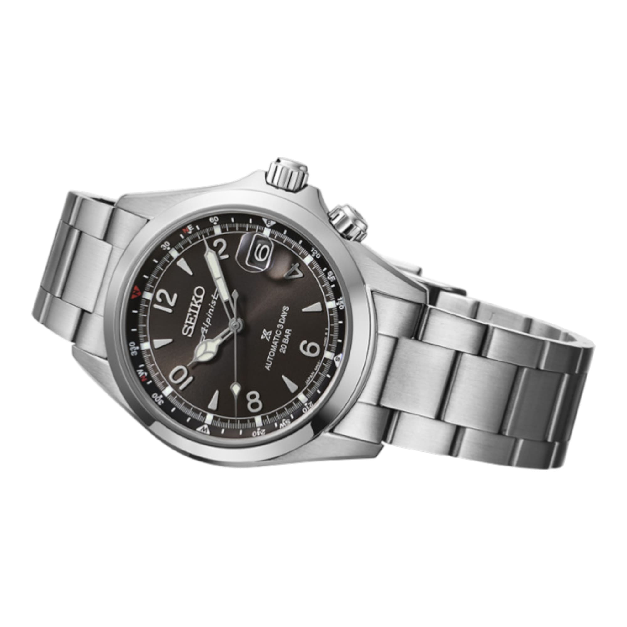 The iconic Seiko "Alpinist" includes the Prospex collection in 2020, with the X logo on the dial but always keeping its inimitable chic design and vintage. The automatic Prospex SPB155J1 shows the iconic combination of colors, green on its dial, and gold, on the needles, index and numbers. This Prospex watch has a seal of 20 bar and is mounted on a stainless steel bracelet that perfectly enhances the colors of the dial.