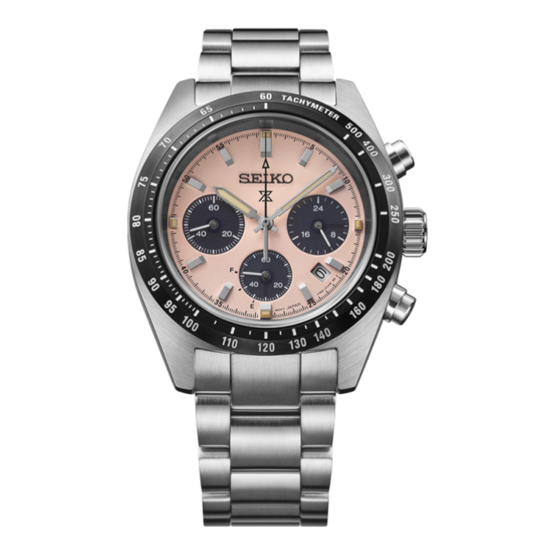 The new SSC813P1 model includes the SPEEDTIMER PROSPECT. A solar chronograph animated by the V192 caliber. The shape of the housing is inspired by the original 1964 with a new diameter of 39 mm, the gentle polishing of the bracelet and the curved glass sapphire gives it a very current character. The sandblasted finish of the white dial, guarantees a high level of readability, essential characteristic of the SLOSEX watches.