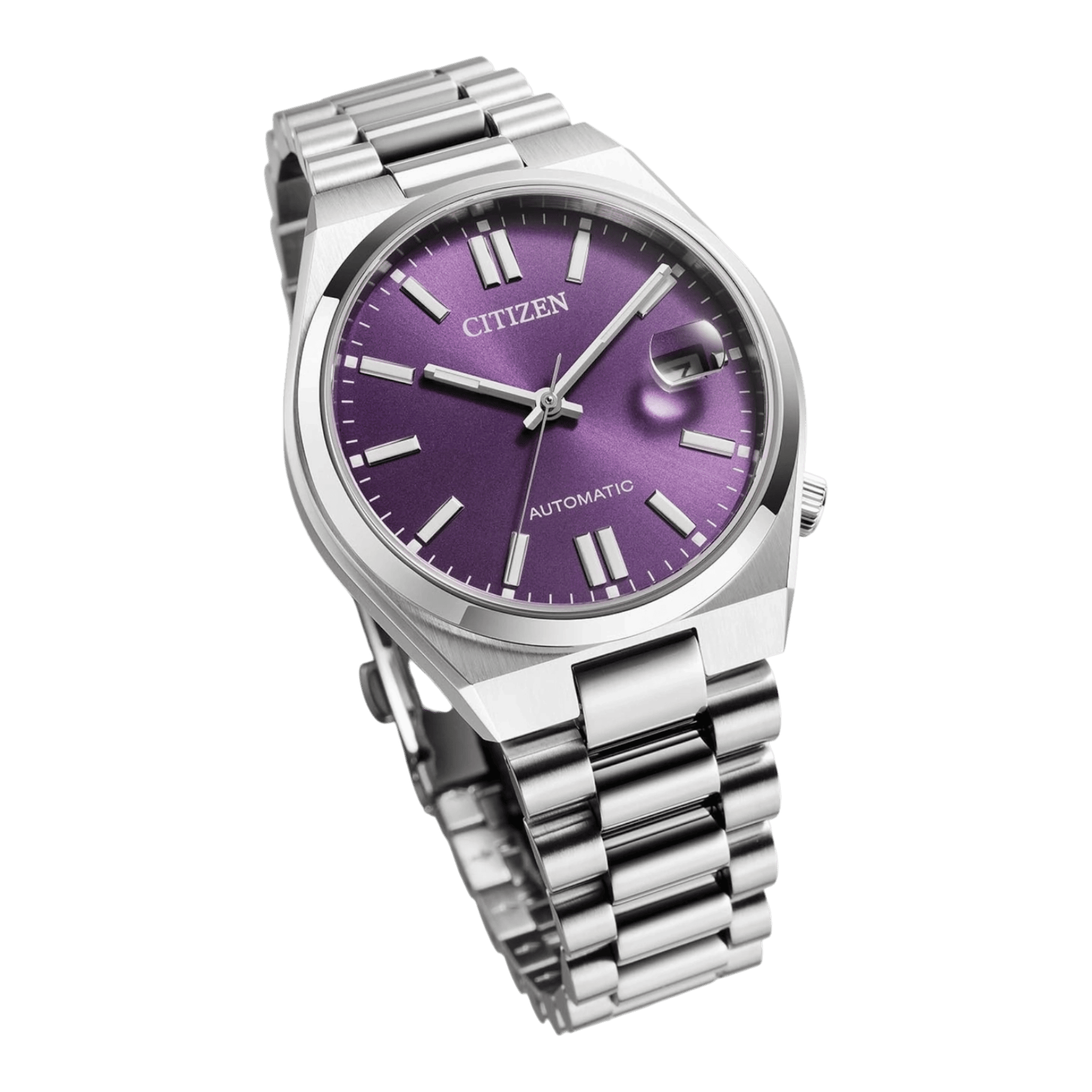 Citizen NJ0200-50W – Montre mécanique homme au cadran violet et calibre 8210La Citizen NJ0200-50W est une montre mécanique élégante qui séduira les passionnés d’horlogerie grâce à son design raffiné et son excellent rapport qualité-prix. Son boîtier en acier inoxydable argenté de 37 mm (épaisseur env. 11,5 mm) accueille un cadran violet lumineux, moderne et distinctif, sublimé par des index linéaires offrant une lisibilité optimale. Cette montre est animée par le mouvement mécanique Citizen calibre 8210, reconnu pour sa fiabilité et sa réserve de marche de 42 heures. Avec une précision de –20/+40 secondes par jour, elle fonctionne exclusivement grâce à l’énergie mécanique, sans pile, dans la pure tradition horlogère. La Citizen NJ0200-50W est équipée d’un verre saphir résistant aux rayures ainsi que d’un fond de boîte transparent vissé, permettant d’admirer le mouvement en toute sécurité. Son bracelet en acier inoxydable massif, associé à une boucle déployante à double poussoir, assure confort et maintien au quotidien. Avec une étanchéité de 5 bar, cette montre mécanique est idéale pour un usage quotidien tout en ajoutant une touche élégante et colorée à votre style. | |