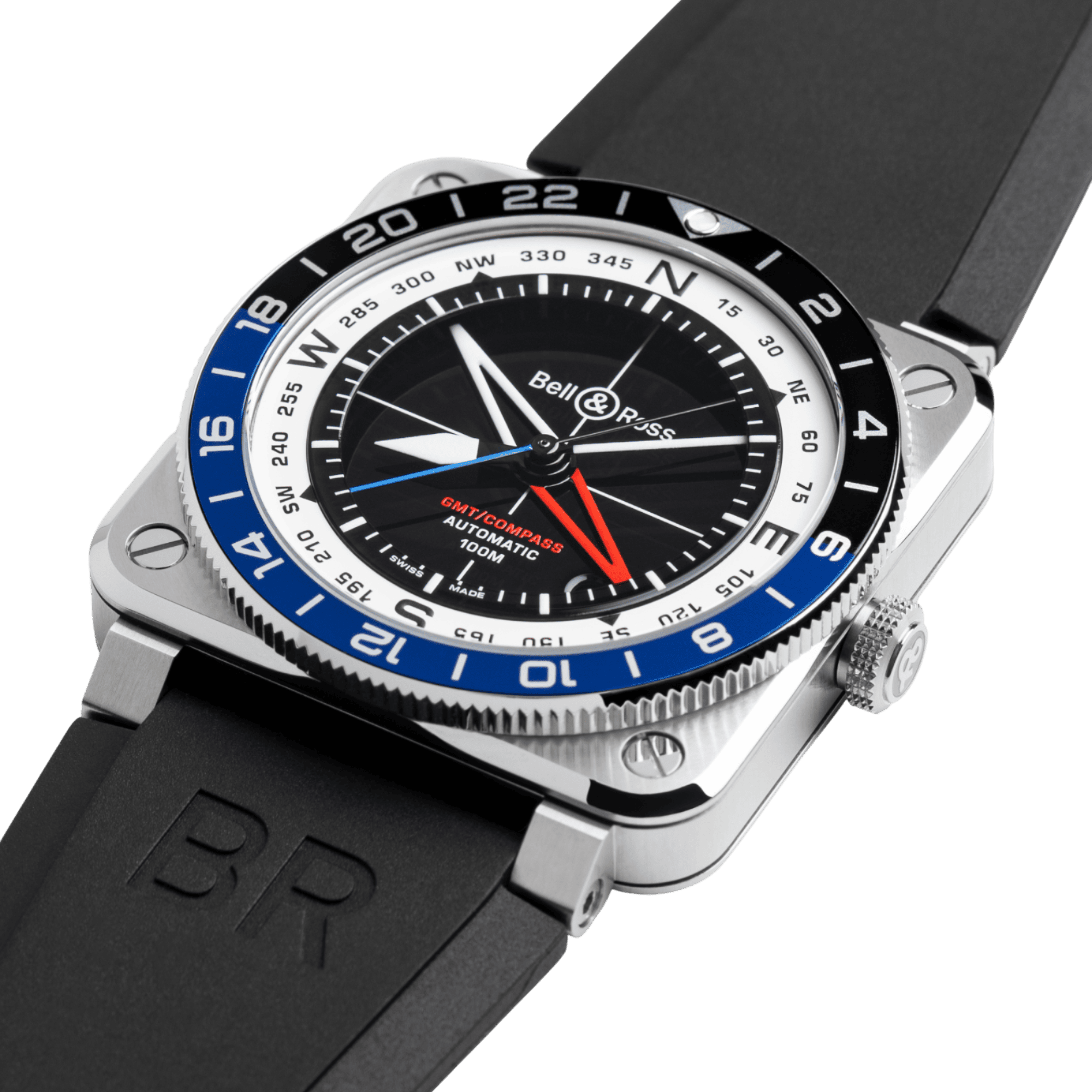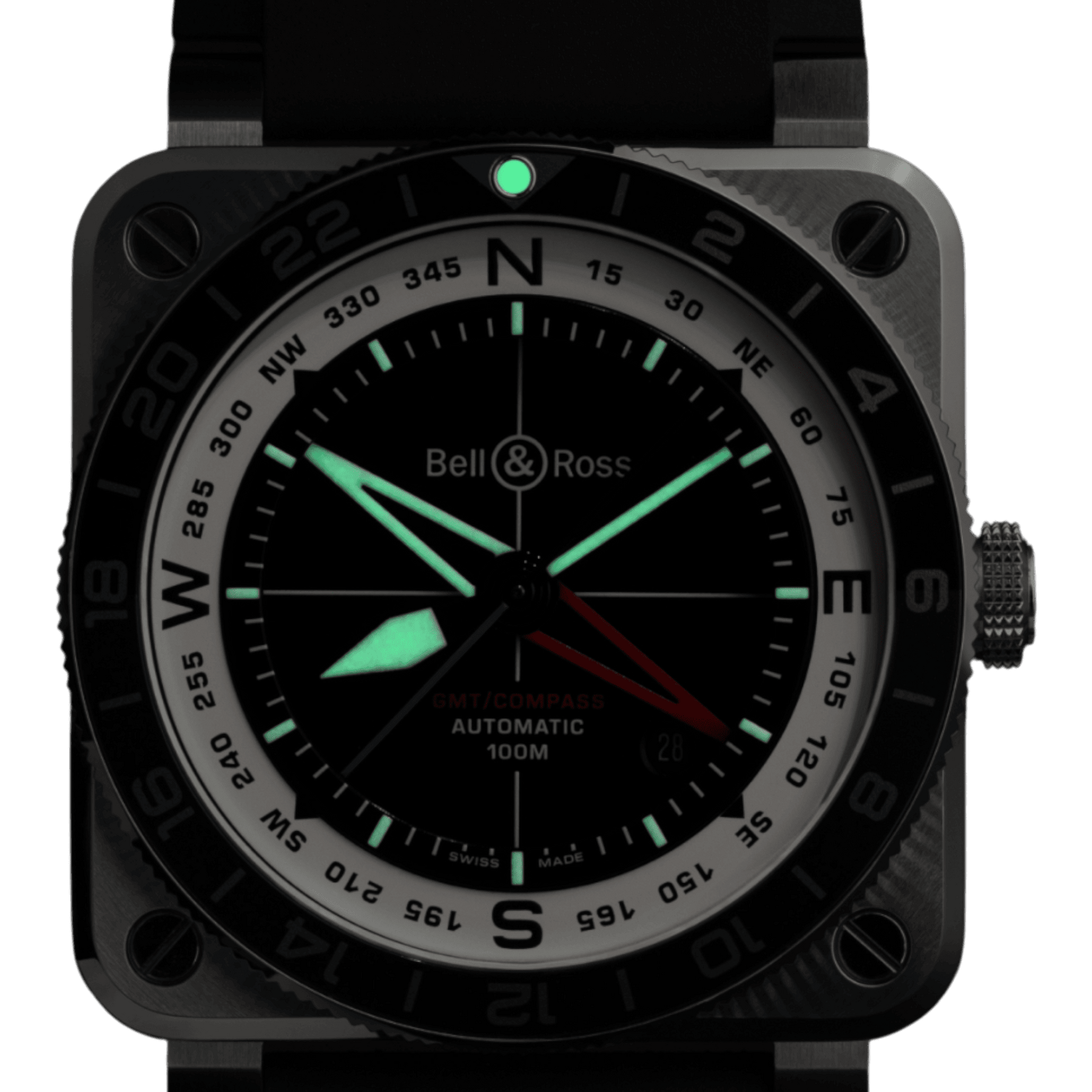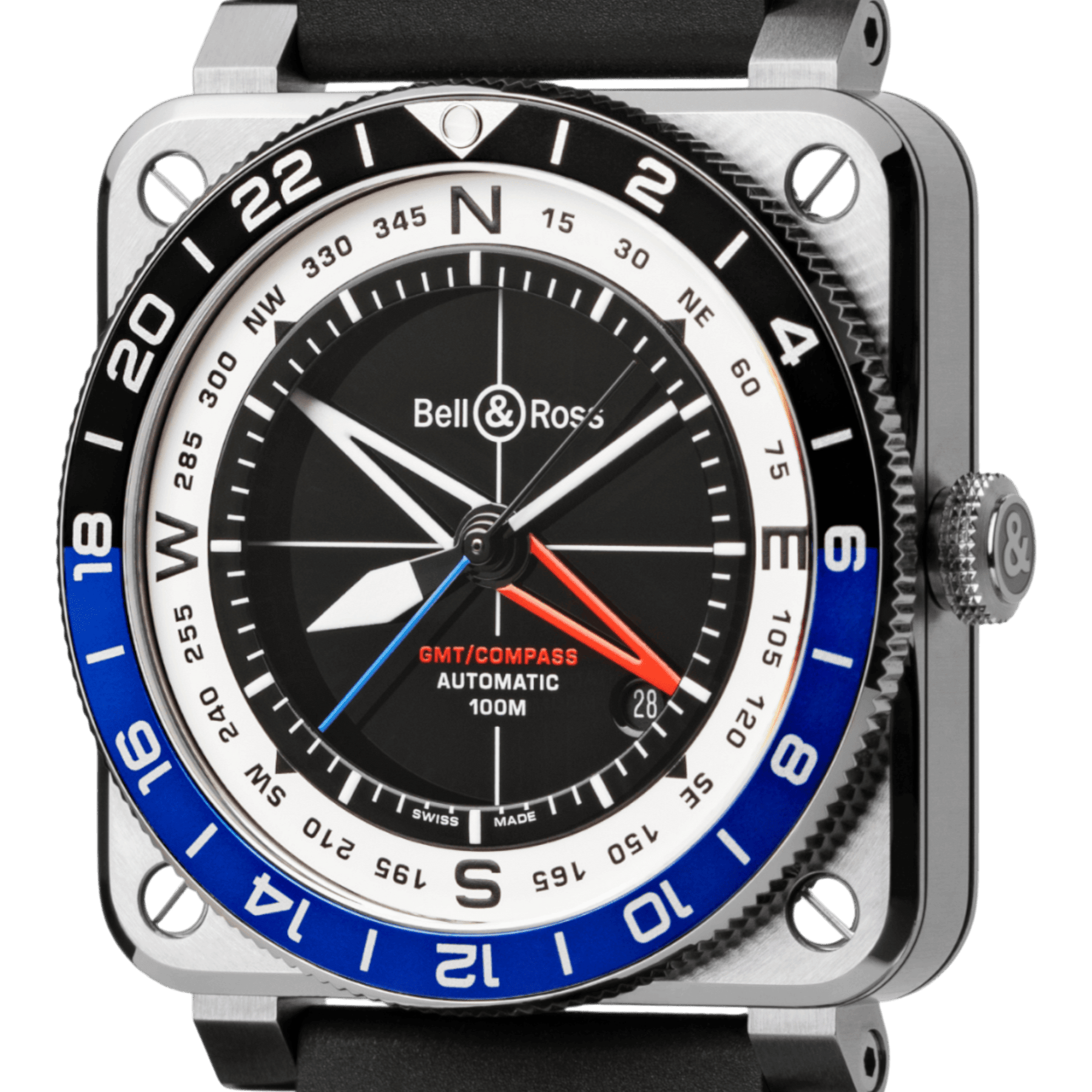 Bell & Ross BR 03 GMT Compass – 42 mmÉdition limitée à 500 exemplaires Quand la boussole devient montreAvec la BR 03 GMT Compass, Bell & Ross repousse les frontières du design fonctionnel en s’inspirant directement de la boussole magnétique. Fidèle à l’esprit des Flight Instruments initié en 2010, ce modèle unique transpose l’univers aéronautique sur le poignet à travers un boîtier carré de 42 mm immédiatement reconnaissable. Une montre GMT pensée pour les voyageursLa fonction GMT permet d’afficher simultanément deux fuseaux horaires, idéale pour les globe-trotteurs et pilotes modernes. Animée par le calibre automatique BR-CAL.303, la BR 03 GMT Compass offre une réserve de marche confortable de 54 heures et une étanchéité jusqu’à 100 mètres, garantissant performance et fiabilité dans toutes les conditions. Un instrument de navigation au poignetPlus qu’un garde-temps, cette édition limitée fait office de boussole solaire fonctionnelle. En orientant la montre face au soleil, l’aiguille GMT en forme de losange et les graduations du réhaut sur 360° permettent de déterminer les points cardinaux. Un clin d’œil horloger à l’esprit d’exploration qui anime Bell & Ross depuis ses débuts. |