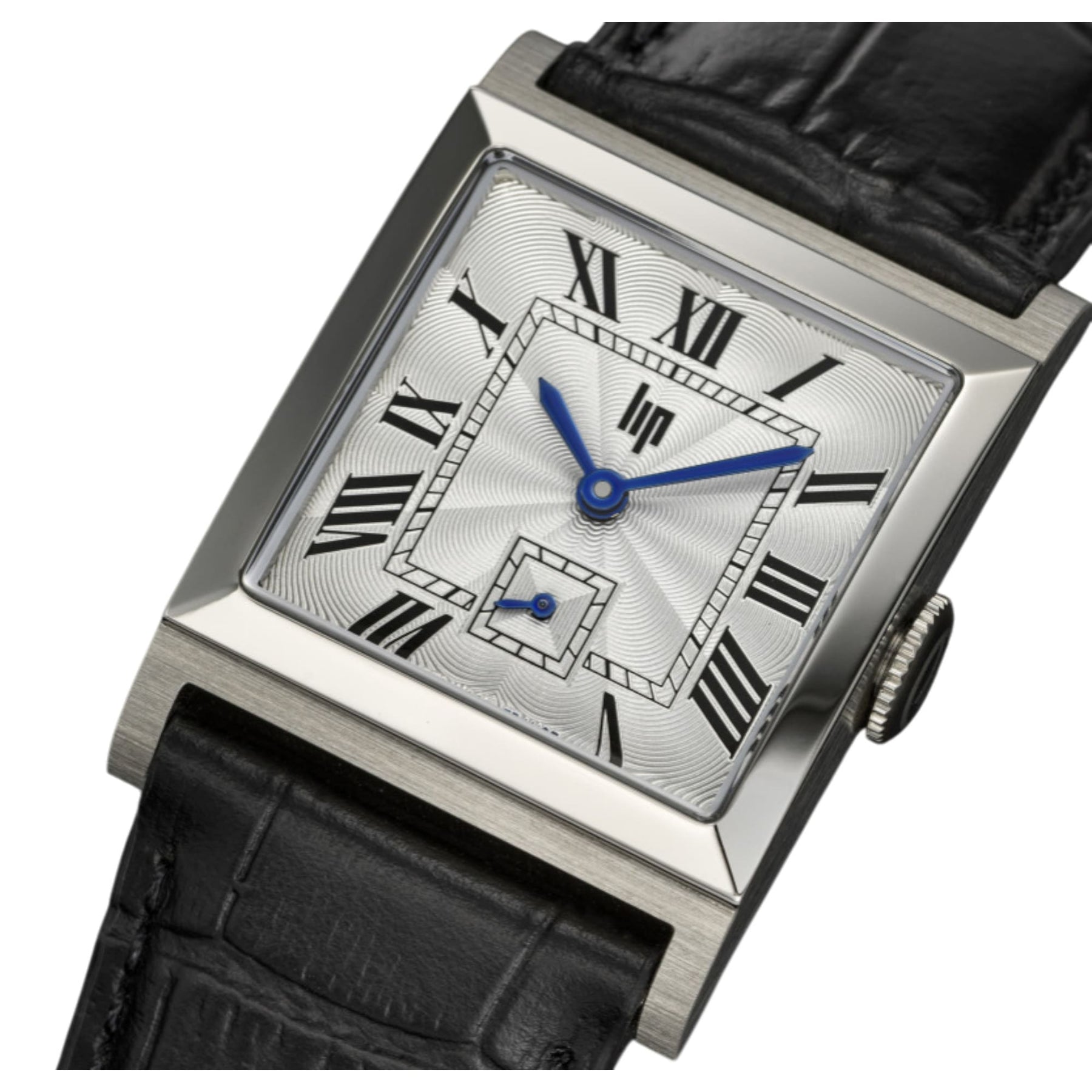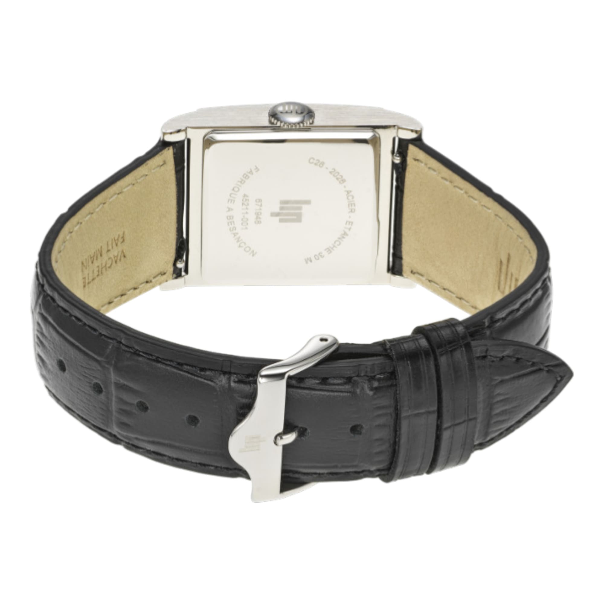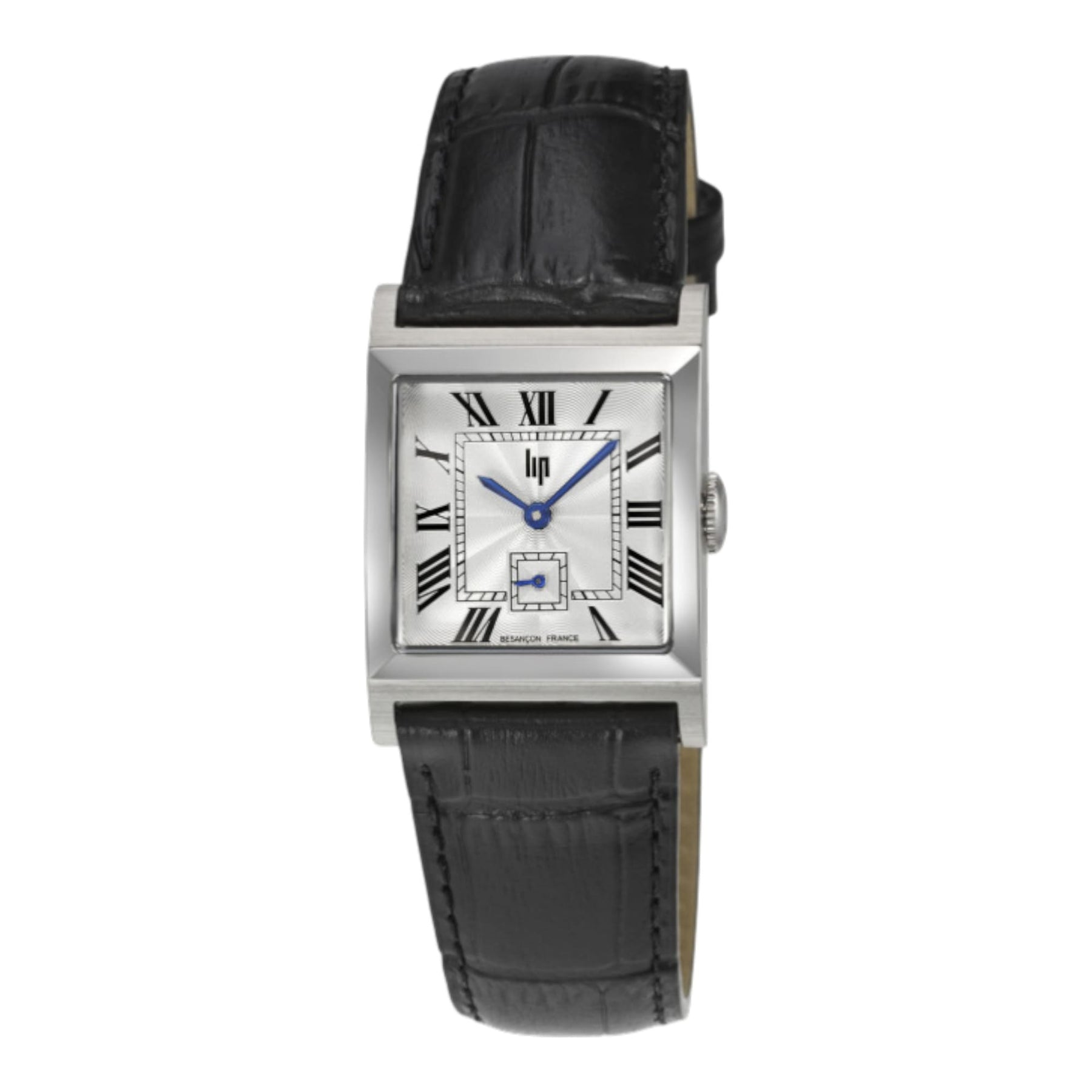 Ce contraste subtil entre l’argenté du cadran et le bleu des aiguilles apporte profondeur et sophistication, dans la plus pure tradition horlogère. Mouvement à quartz précis et fiableCette montre est équipée d’un mouvement à quartz, reconnu pour sa précision et sa fiabilité au quotidien. Bracelet cuir noir façon crocodileSon bracelet noir en cuir de vachette façon crocodile renforce son allure distinguée. Une montre élégante au caractère résolument frenchyFabriquée en France à Besançon, la Churchill C26 incarne le savoir-faire horloger français et le style intemporel propre à LIP. |
