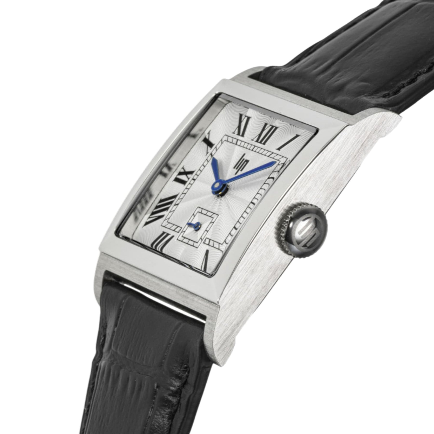 Montre Churchill C26 : l’élégance intemporelle à la françaiseLa Churchill C26 est une montre française au design iconique, directement inspirée du célèbre modèle T26 Churchill. Cette déclinaison contemporaine conserve l’ADN historique de la collection tout en proposant un format raffiné de 26 mm, parfaitement adapté aux poignets élégants. Son boîtier carré de 26 mm affirme un style classique et structuré, idéal pour celles et ceux qui recherchent une montre habillée, chic et intemporelle. Cadran guilloché et chiffres romains : un style horloger iconiqueLa Churchill C26 séduit par son superbe cadran argenté à finition guillochée, sublimé par :