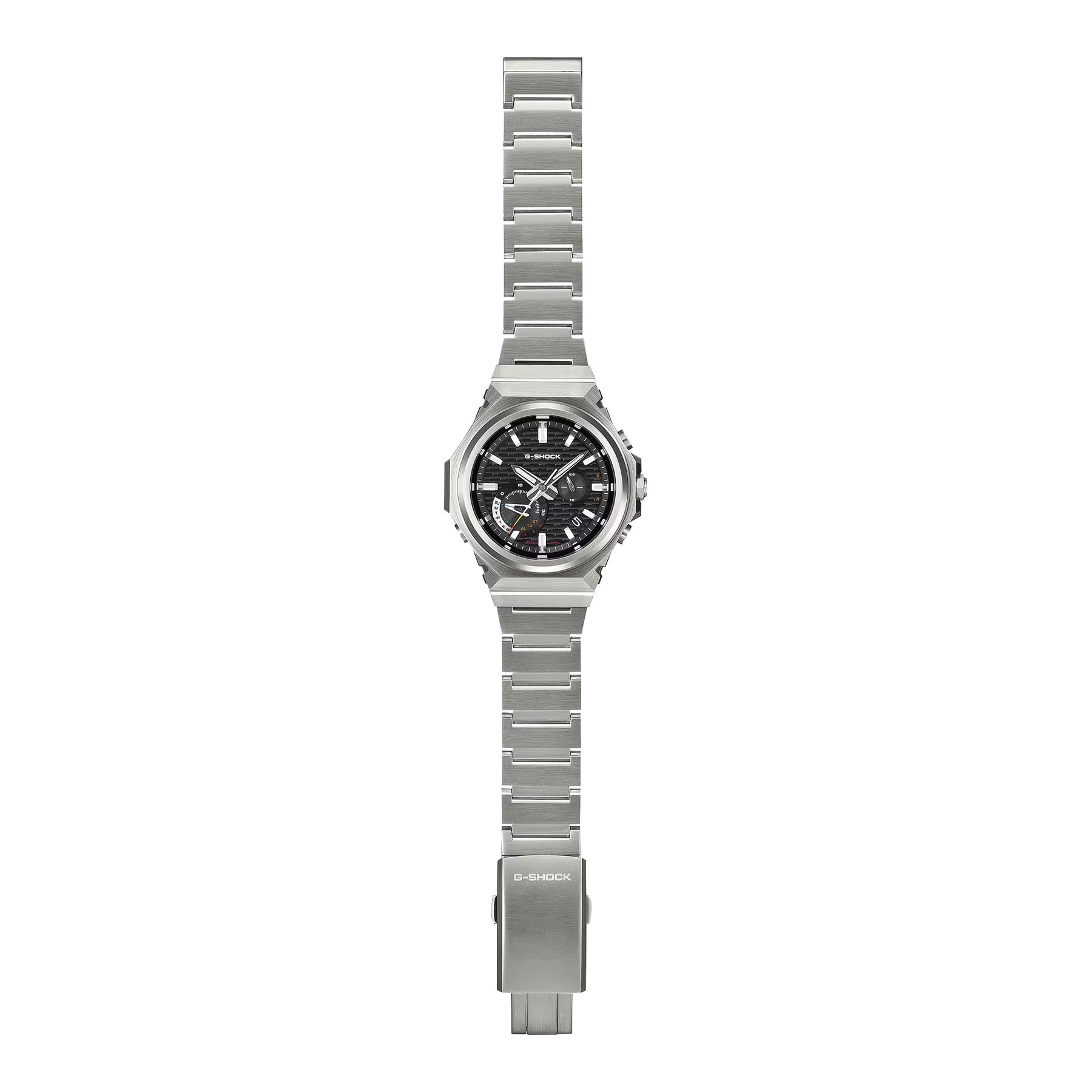 Alliant robustesse, innovation et élégance fonctionnelle, la G-SHOCK GST-B1000D revisite l’ADN de la marque dans une approche minimaliste et contemporaine. Conçue pour perpétuer la philosophie de durabilité extrême propre à G-SHOCK, elle se distingue par un design épuré où chaque détail est pensé pour offrir style et performance. La lunette, désormais sans logo, met en valeur un travail de finitions exceptionnel : hairline vertical, hairline circulaire et polissage miroir. Ces textures contrastées créent des jeux de lumière subtils selon l’inclinaison du poignet. Le bracelet en acier inoxydable, alternant polissage miroir et finition brossée, s’accompagne d’un fermoir à trois volets robuste et confortable, pour une polyvalence parfaite du bureau au sport, en passant par les moments plus décontractés. Héritière directe de la première G-SHOCK DW-5000C, cette référence reprend des éléments emblématiques comme la silhouette de la lunette et le motif mur de briques. La GST-B1000D-1AJF intègre également les trois couleurs historiques de la marque :