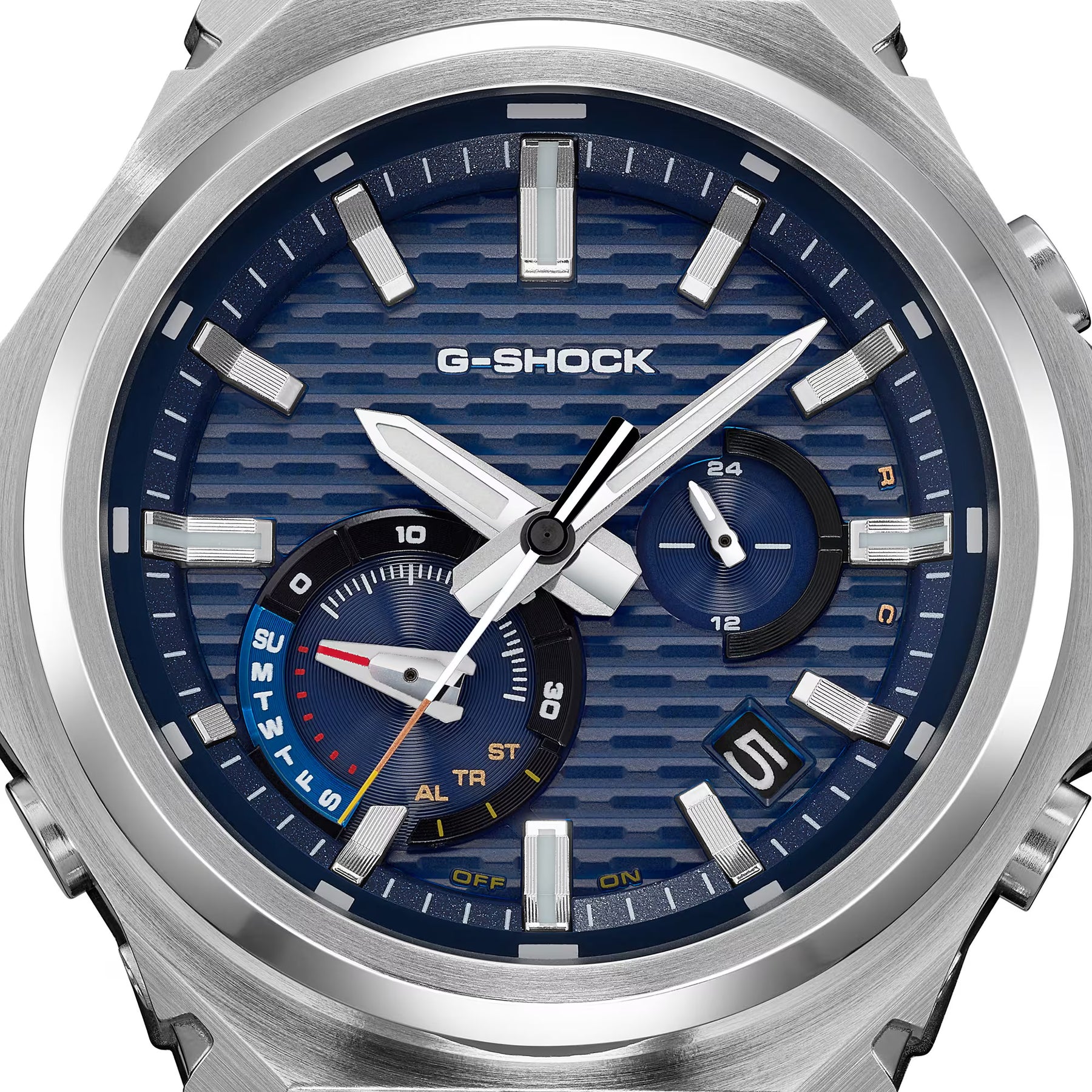 Alliant robustesse, innovation et élégance fonctionnelle, la G-SHOCK GST-B1000D revisite l’ADN de la marque dans une approche minimaliste et contemporaine. Conçue pour perpétuer la philosophie de durabilité extrême propre à G-SHOCK, elle se distingue par un design épuré où chaque détail est pensé pour offrir style et performance. La lunette, désormais sans logo, met en valeur un travail de finitions exceptionnel : hairline vertical, hairline circulaire et polissage miroir. Ces textures contrastées créent des jeux de lumière subtils selon l’inclinaison du poignet. Le bracelet en acier inoxydable, alternant polissage miroir et finition brossée, s’accompagne d’un fermoir à trois volets robuste et confortable, pour une polyvalence parfaite du bureau au sport, en passant par les moments plus décontractés. Héritière directe de la première G-SHOCK DW-5000C, cette référence reprend des éléments emblématiques comme la silhouette de la lunette et le motif mur de briques. La GST-B1000D-1AJF intègre également les trois couleurs historiques de la marque :