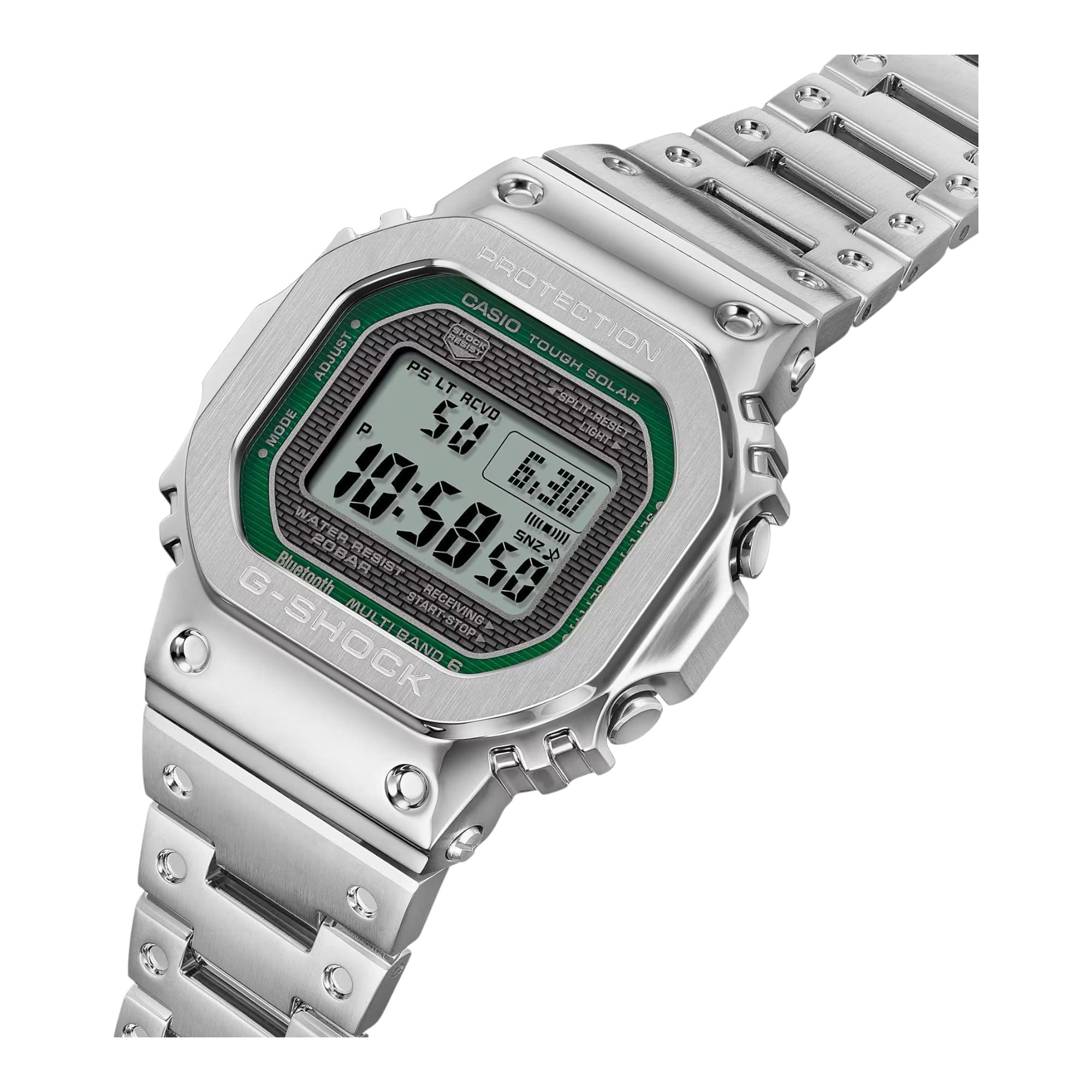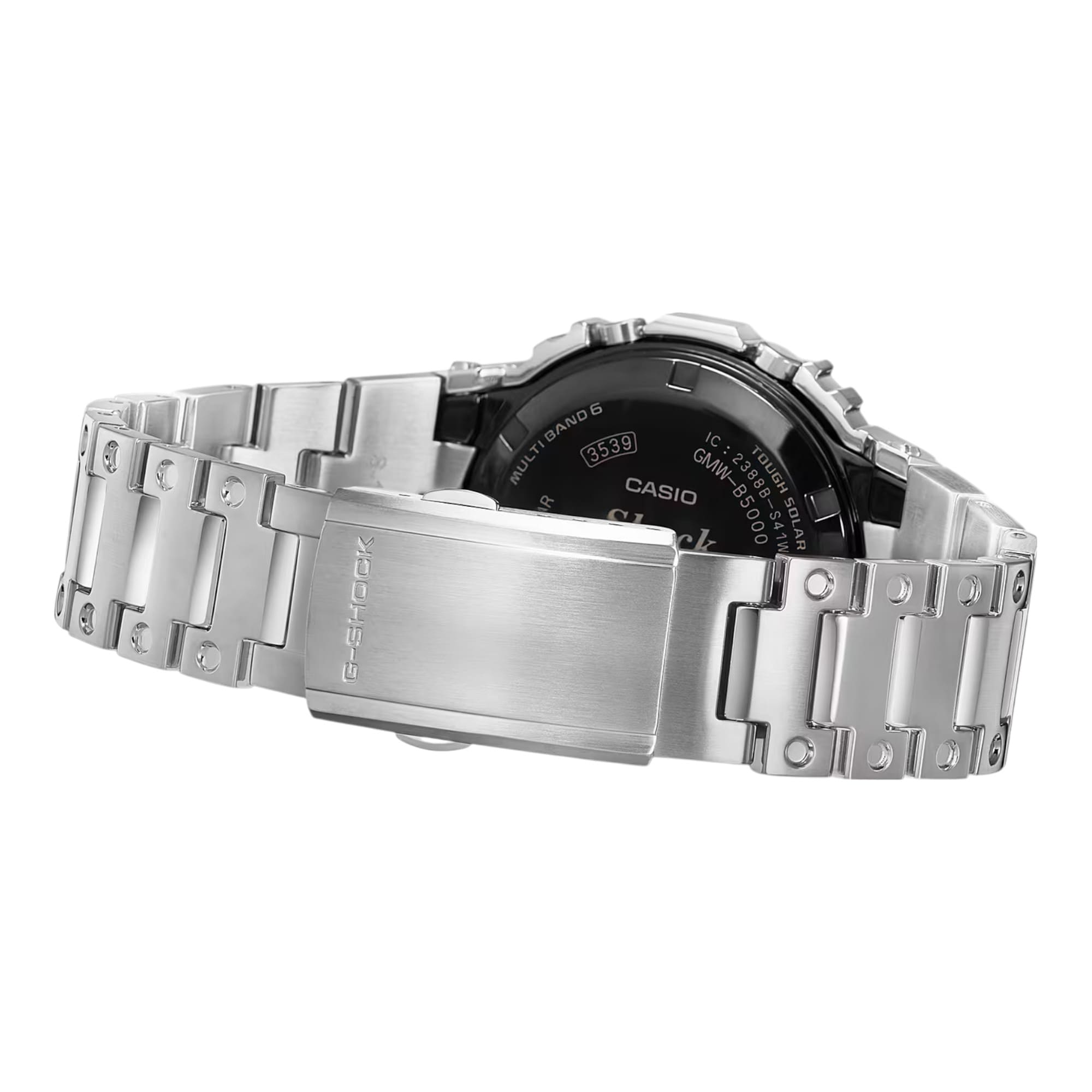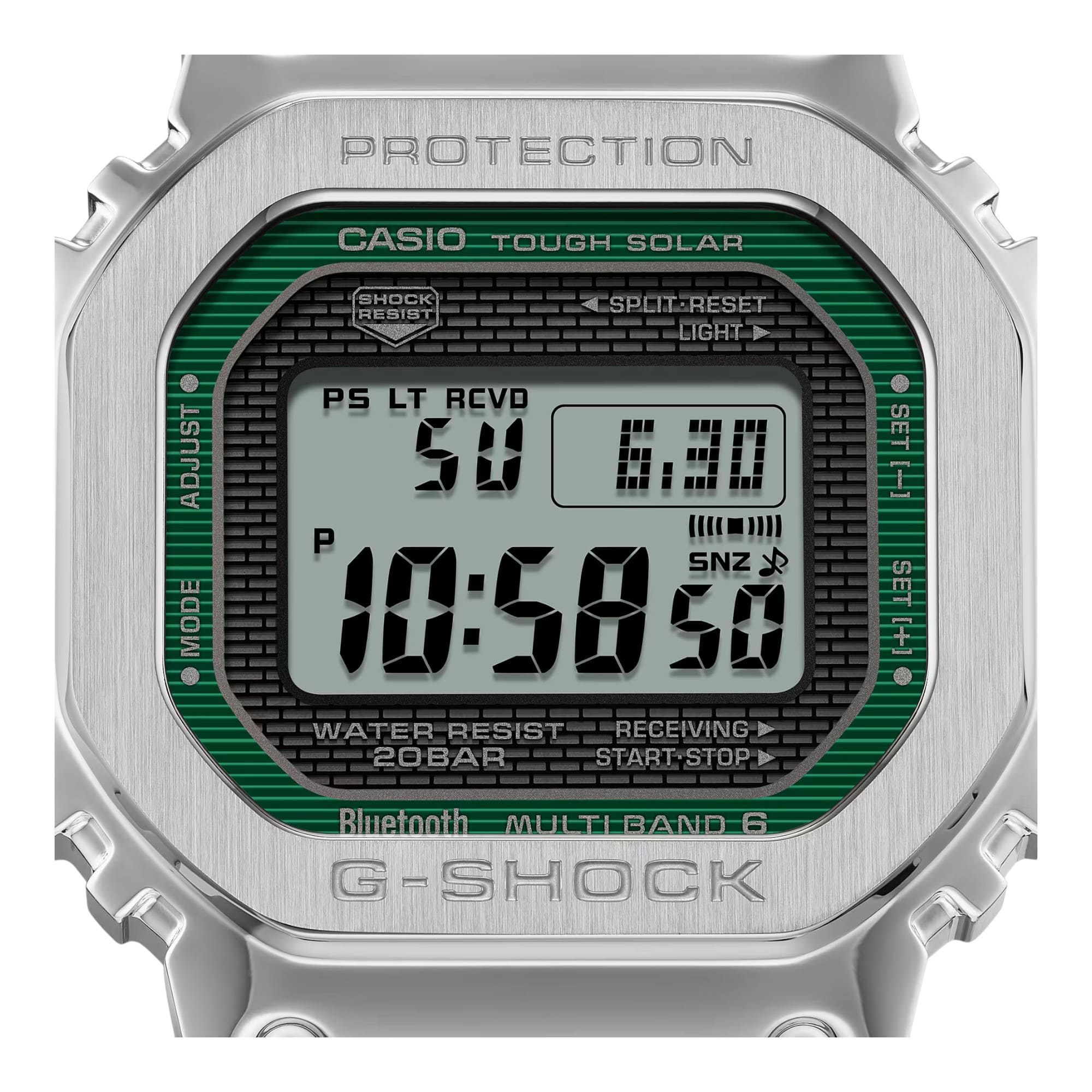 La DW-5000C est le modèle G-Shock original de 1983. La série GMW-B5000 a hérité de sa conception carrée caractéristique et bénéficie d'une finition entièrement métallique, ainsi que de fonctionnalités améliorées, notamment la connexion smartphone. Cette montre a été dotée d'un boîtier entièrement métallique dans lequel un matériau amortissant en résine fine antichoc a été inséré entre le module et la robuste lunette en acier inoxydable. La technologie de montage haute densité permet également à la montre de conserver sa taille. Le dos de la montre présente un fond de boîtier vissé avec revêtement DLC pour résister à l'usure. Le bracelet métallique à embrèvements rappelle le style du bracelet en résine du modèle original. La visibilité a également été améliorée grâce à l'utilisation d'une cellule solaire et d'un écran à cristaux liquides (LCD) STN. Côté fonctionnalités, ce modèle offre une fonction de communication Bluetooth® et peut se connecter à une application dédiée pour obtenir des données horaires précises. Cette montre comprend également de nombreuses fonctionnalités pratiques, notamment un système de correction de l'heure en fonction de signaux de fréquence et d'heure de référence (Multiband 6), une source d'alimentation fiable grâce à la technologie Tough Solar, un rétroéclairage LED haute luminosité entièrement automatique, une fonction Heure mondiale et un affichage du jour de la semaine en six langues. Ce modèle G-Shock reste fidèle à ses origines, avec un style plus raffiné grâce à sa conception entièrement métallique. |