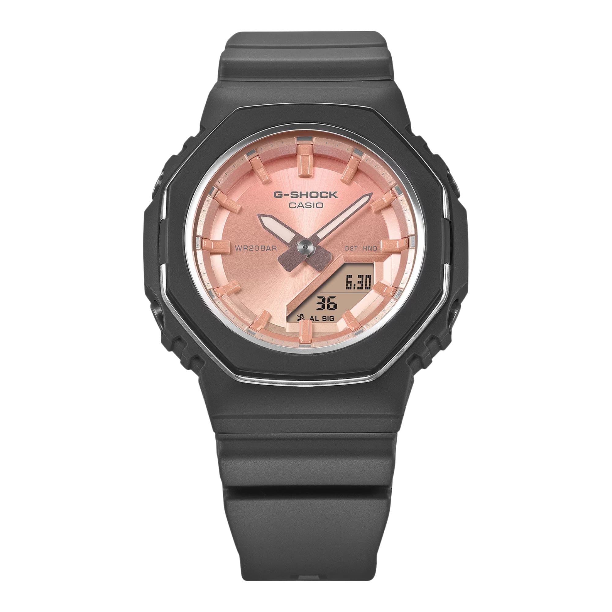 Illumine ton style avec la G-SHOCK GMA-P2100 Compacte et élégante, cette montre dévoile un cadran aux couleurs polarisées, dont les reflets changent selon l’inclinaison du poignet. Les index scintillants ajoutent une touche de lumière supplémentaire, créant un jeu visuel aussi raffiné qu’original. Pour équilibrer cet éclat, la lunette et le bracelet mats offrent un contraste sophistiqué qui souligne la modernité du design. Fabriqués en résine biosourcée, ils associent durabilité et engagement pour un impact réduit sur l’environnement.