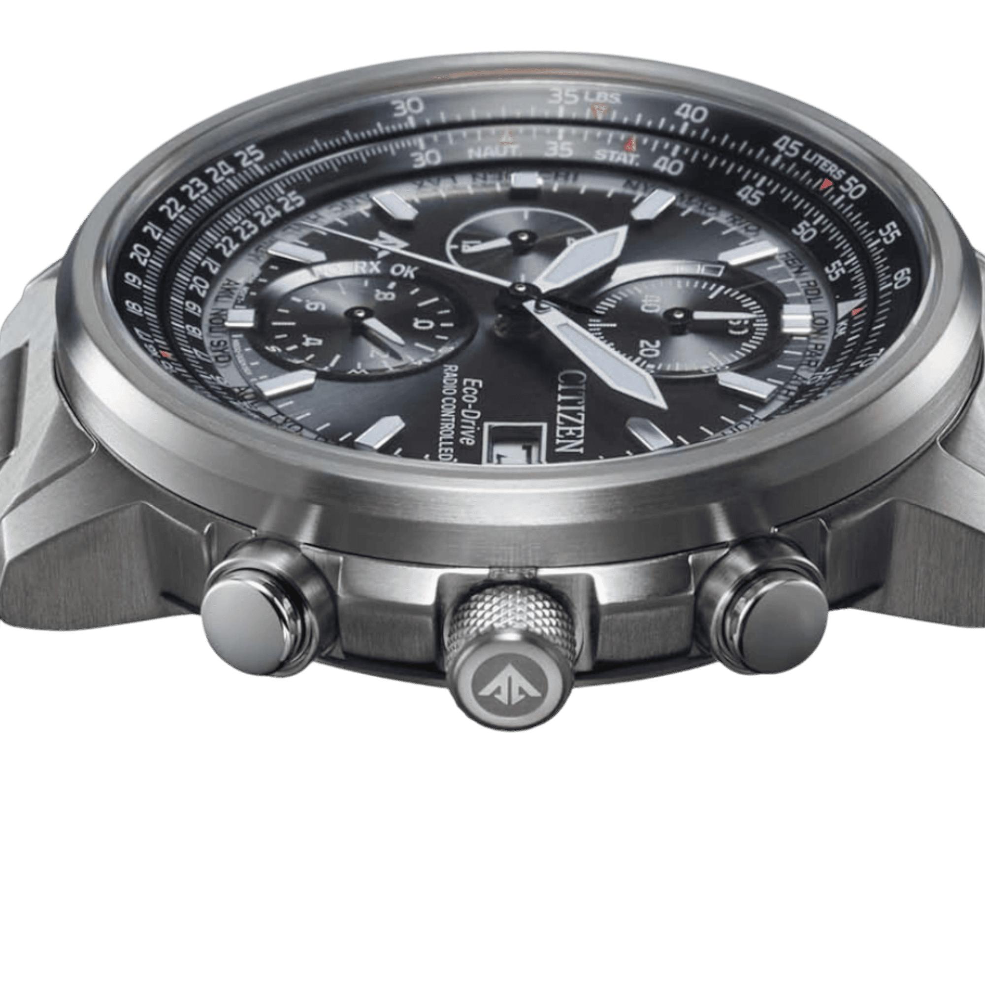Citizen Promaster Sky Eco-Drive H800 – Chronographe radio-piloté acier & cadran NoirDescription longue optimisée SEOLa Citizen Promaster Sky Eco-Drive H800 est une montre professionnelle conçue pour les passionnés d’aviation, les voyageurs et les amateurs de précision. Dotée d’un boîtier en acier inoxydable argenté de 41 mm (épaisseur 11,62 mm), elle allie robustesse et élégance tout en intégrant l’un des calibres Eco-Drive les plus avancés de la marque. Animée par le calibre Eco-Drive H800, cette montre fonctionne sans pile, alimentée par la lumière, et offre une réserve d’énergie allant jusqu’à 180 jours. Elle propose un ensemble complet de fonctionnalités professionnelles :
