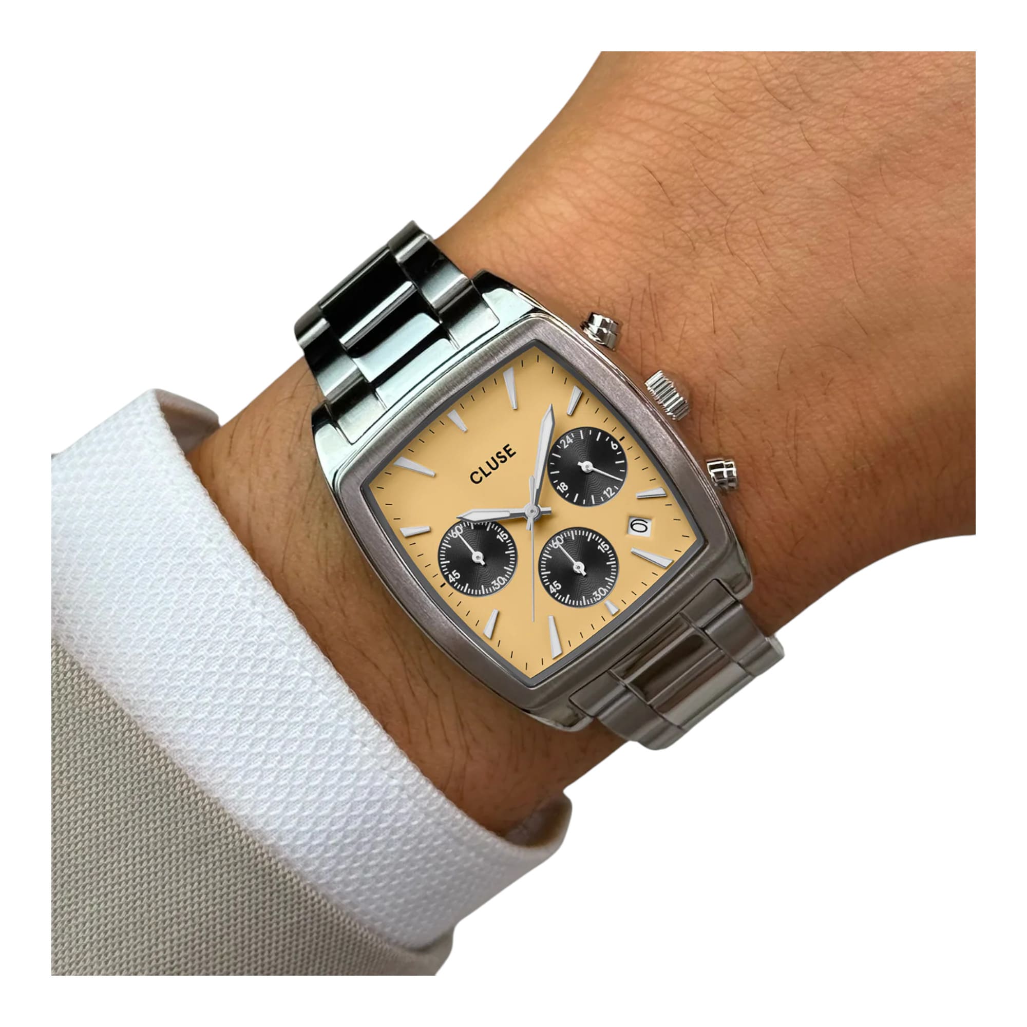Découvrez la collection de montres CLUSE Quartaut pour homme. Design audacieux et chronographe précis dans un boîtier élégant en acier inoxydable. Choisissez parmi les coloris vert, bleu ou argenté pour un look sophistiqué au quotidien. Parfaite pour toutes les occasions. • Boîtier : Forme tonneau rectangulaire en acier inoxydable poli et brossé pour une solidité et une sophistication optimales. La collection de montres CLUSE Quartaut est conçue pour les hommes qui recherchent à la fois style et précision. Avec son boîtier élégant en acier inoxydable, cette montre chrono allie design audacieux et fonctionnalité. Sa forme rectangulaire et son bracelet à 3 maillons en acier inoxydable argenté apportent une touche de sophistication à votre tenue quotidienne. Disponible en plusieurs coloris (vert, bleu, argenté), la montre Quartaut s’adapte parfaitement à votre style de vie, que ce soit pour le travail ou les sorties en soirée. •Polyvalence : Parfaite pour une utilisation quotidienne, que ce soit en journée ou en soirée. Sublimez votre style avec la collection Quartaut de CLUSE. Explorez notre gamme complète de montres pour hommes et trouvez le modèle qui vous convient le mieux. Que vous préfériez un look classique ou audacieux, la montre Quartaut répondra à vos attentes en matière de style et de précision. |
