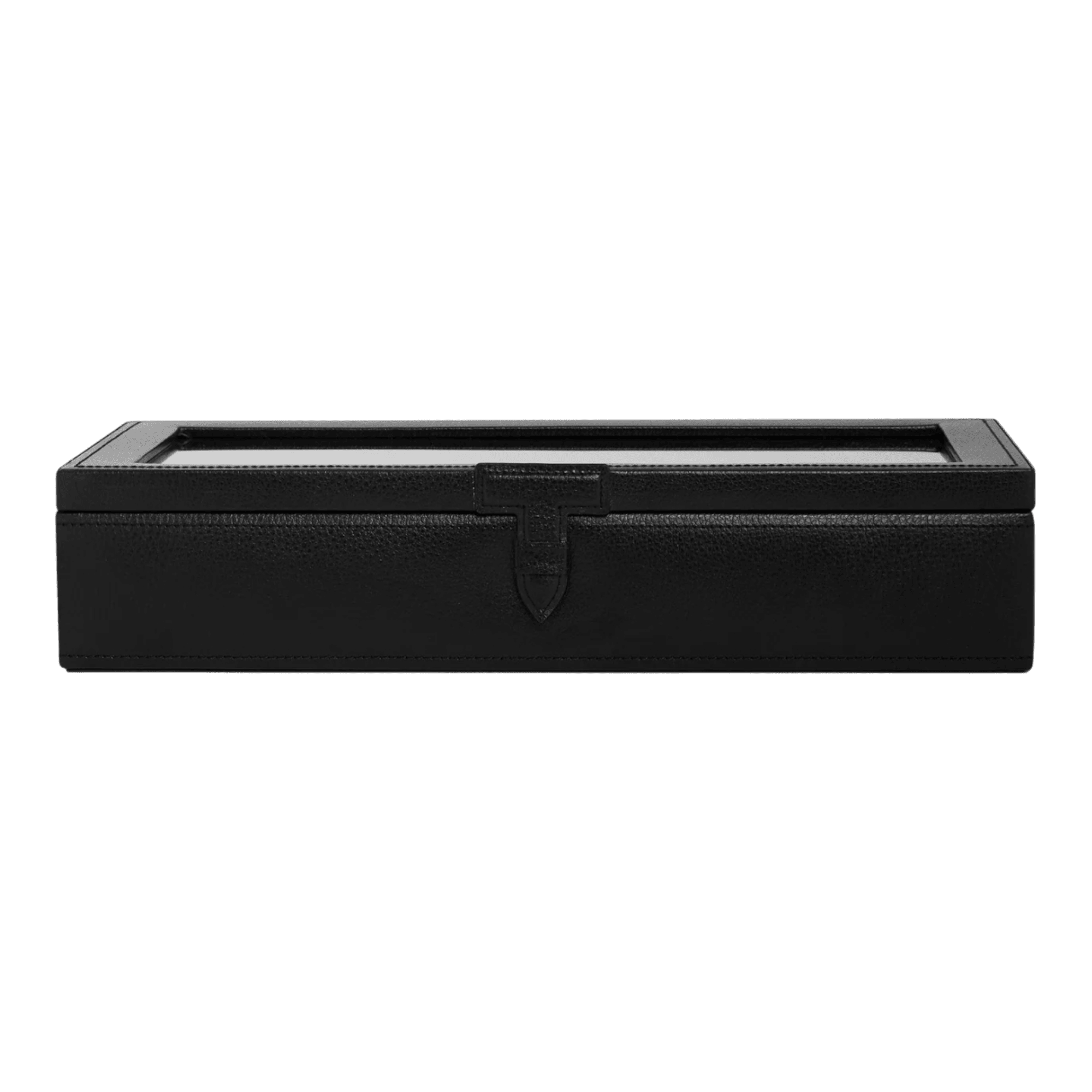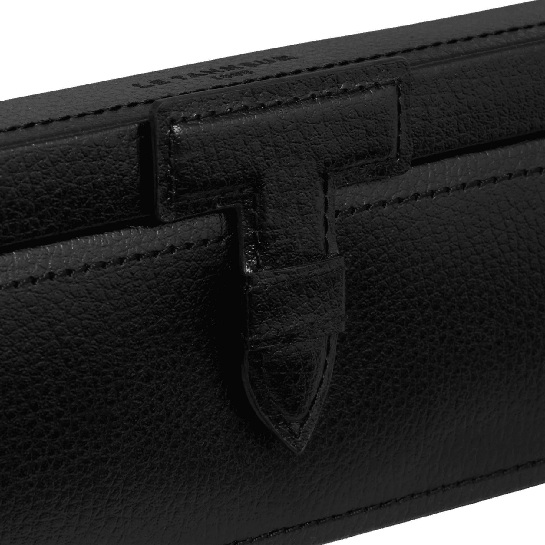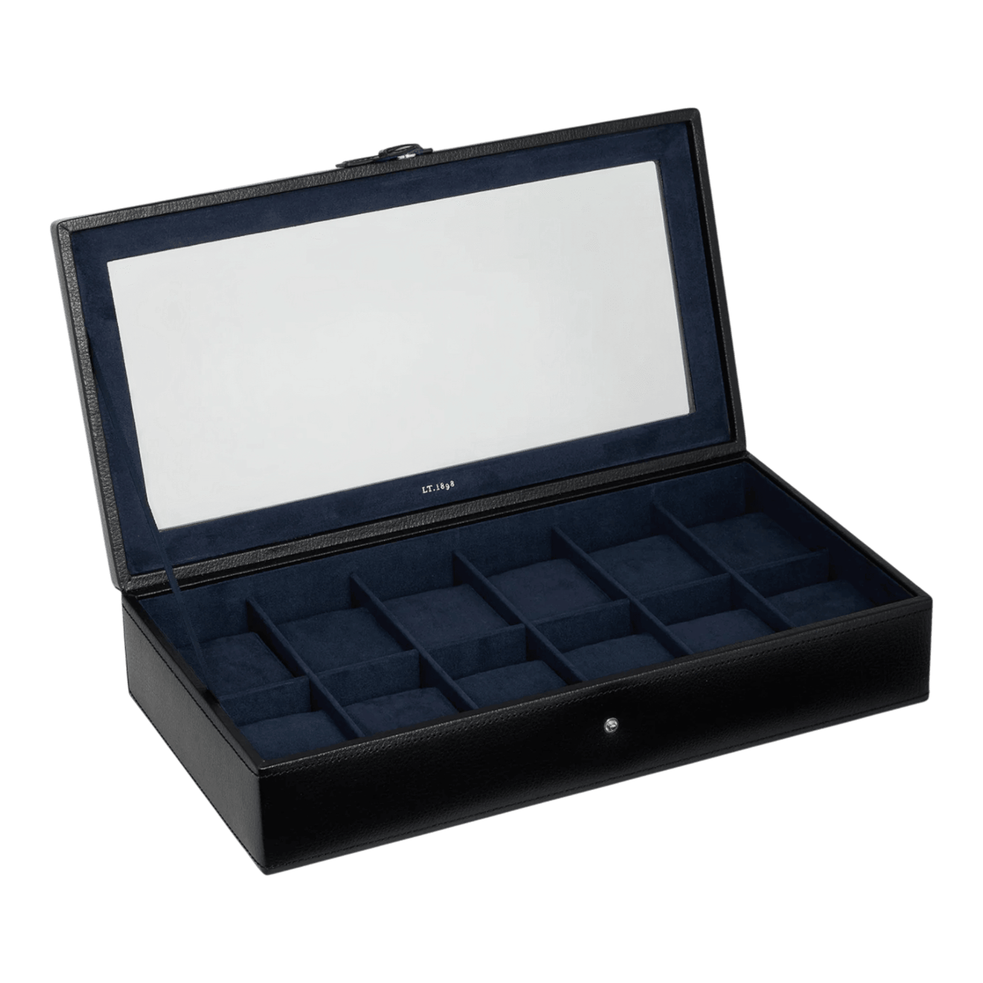 Coffret douze montres vitré avec doublure velours, marquage Le Tanneur ton sur ton et fermoir en T signature.