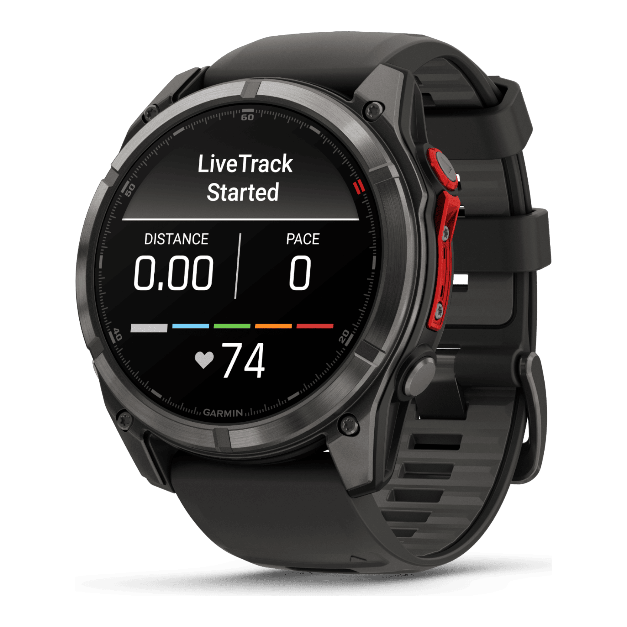 Garmin fēnix® 8 Pro – 51 mm MicroLED Sapphire Titane Carbon Gray DLCLa montre GPS multisports la plus lumineuse et la plus avancée jamais conçue. Entrez dans une nouvelle ère de la performance avec la Garmin fēnix® 8 Pro – MicroLED, une montre connectée multisports premium qui repousse les limites de la technologie. Fabriquée selon la norme militaire américaine (MIL-STD-810), cette montre ultra-résistante intègre les dernières innovations Garmin : connectivité LTE et satellite inReach®, appels et messages sans smartphone, cartographie avancée et fonctions d’entraînement de haut niveau. Écran MicroLED : la brillance à son apogéeLe nouvel écran tactile MicroLED de 1,4″ offre une clarté et des couleurs inégalées. Avec ses angles de vision ultra-larges et sa résolution exceptionnelle, il assure un affichage d’une netteté incroyable dans toutes les conditions de lumière. Conçue pour durerLe boîtier en titane Carbon Gray DLC allie légèreté et résistance extrême, tandis que le verre saphir inrayable protège la montre contre les impacts les plus exigeants. Ses boutons étanches en métal et sa lampe torche LED intégrée en font un véritable instrument d’aventure. Connectivité inReach® et LTE : liberté totaleGrâce à la technologie satellite inReach® intégrée, restez connecté même sans réseau :