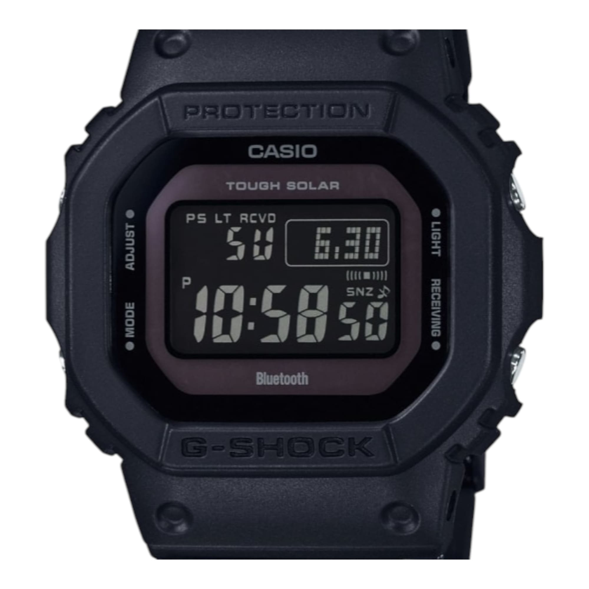 Ce modèle au design carré a su évoluer sans changer de forme depuis la naissance des modèles DW-5000C de première génération. Il est doté de la connectivité Bluetooth® et de Multiband 6. Vous pouvez obtenir des informations précises sur l'heure en vous connectant à l'application dédiée G-SHOCK Connected. La correction automatique de l'heure est disponible dans les zones qui prennent en charge les ondes radio standard émises par six stations de transmission dans le monde entier. Cette montre dispose également de la fonction Tough Solar assurant un fonctionnement stable et d'autres fonctionnalités pratiques comme le rétroéclairage LED haute luminosité entièrement automatique et la fonction Heure mondiale. Elle peut en outre afficher le jour de la semaine en six langues et effectuer des fonctions de localisation. Cette montre est l'aboutissement de progrès considérables dans la recherche d'une référence globale en matière de mesure précise du temps partout dans le monde. L'extérieur du bracelet est composé de pièces métalliques renforcées de résine fine, également utilisée pour les pièces intérieures. La finition adoptée produit une texture brillante. |