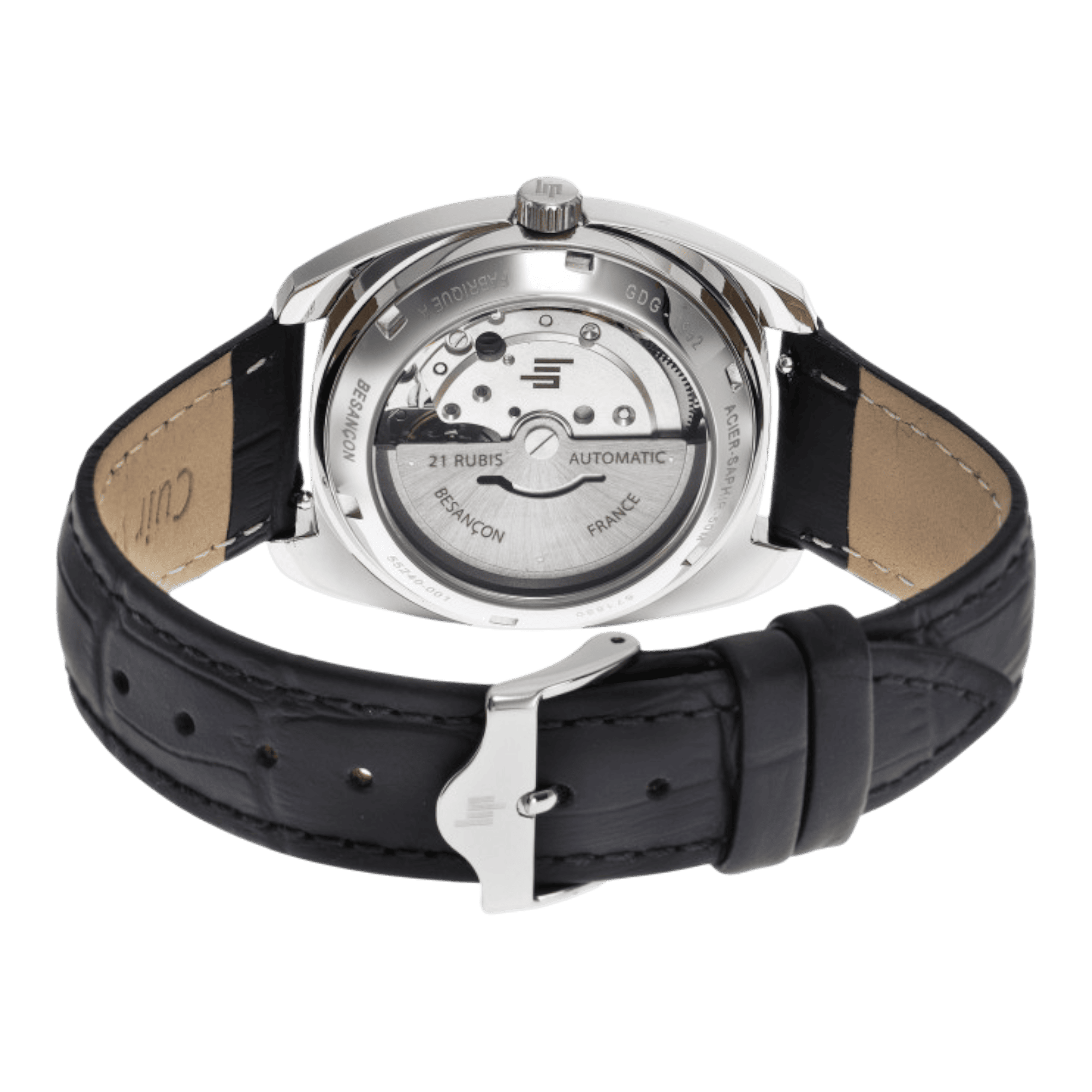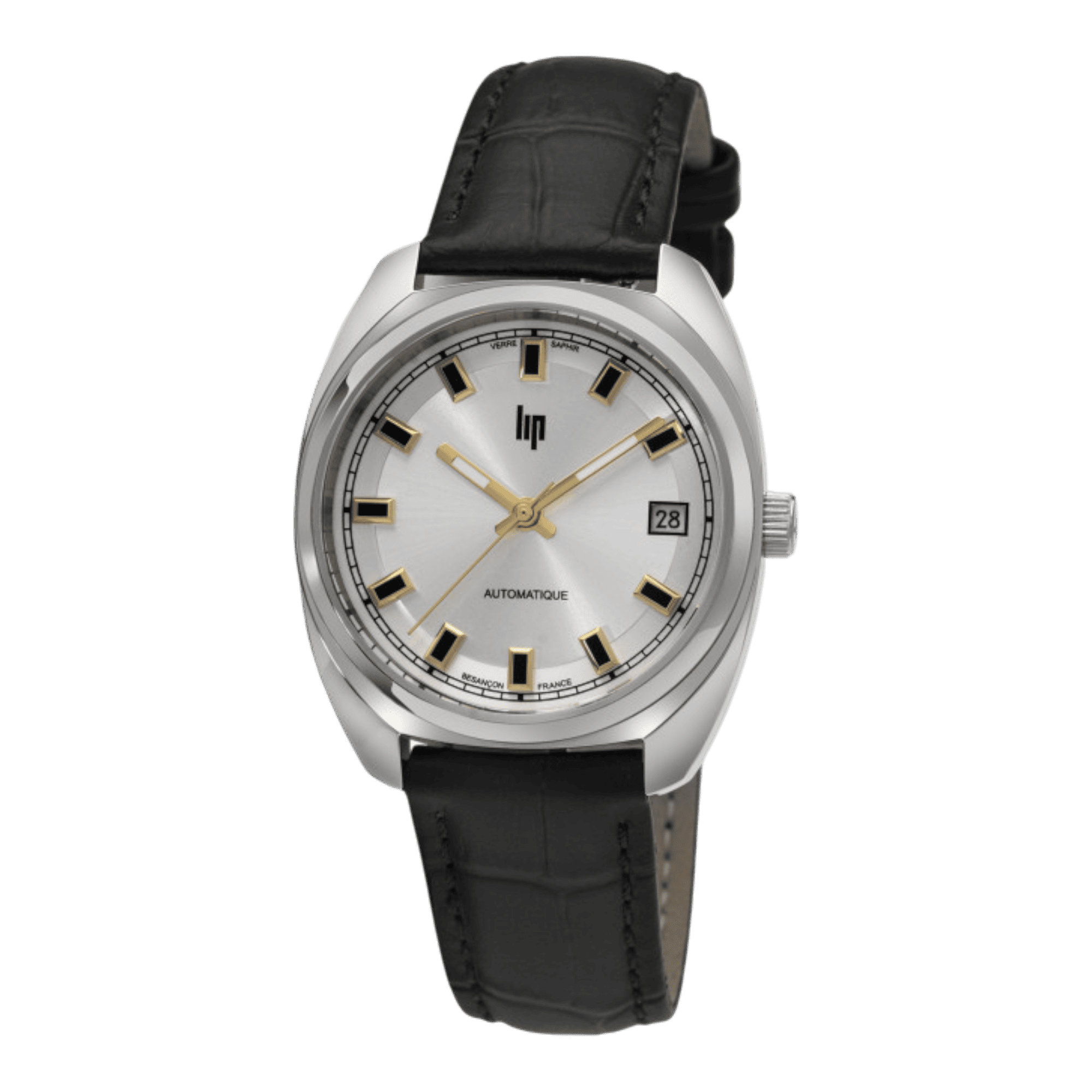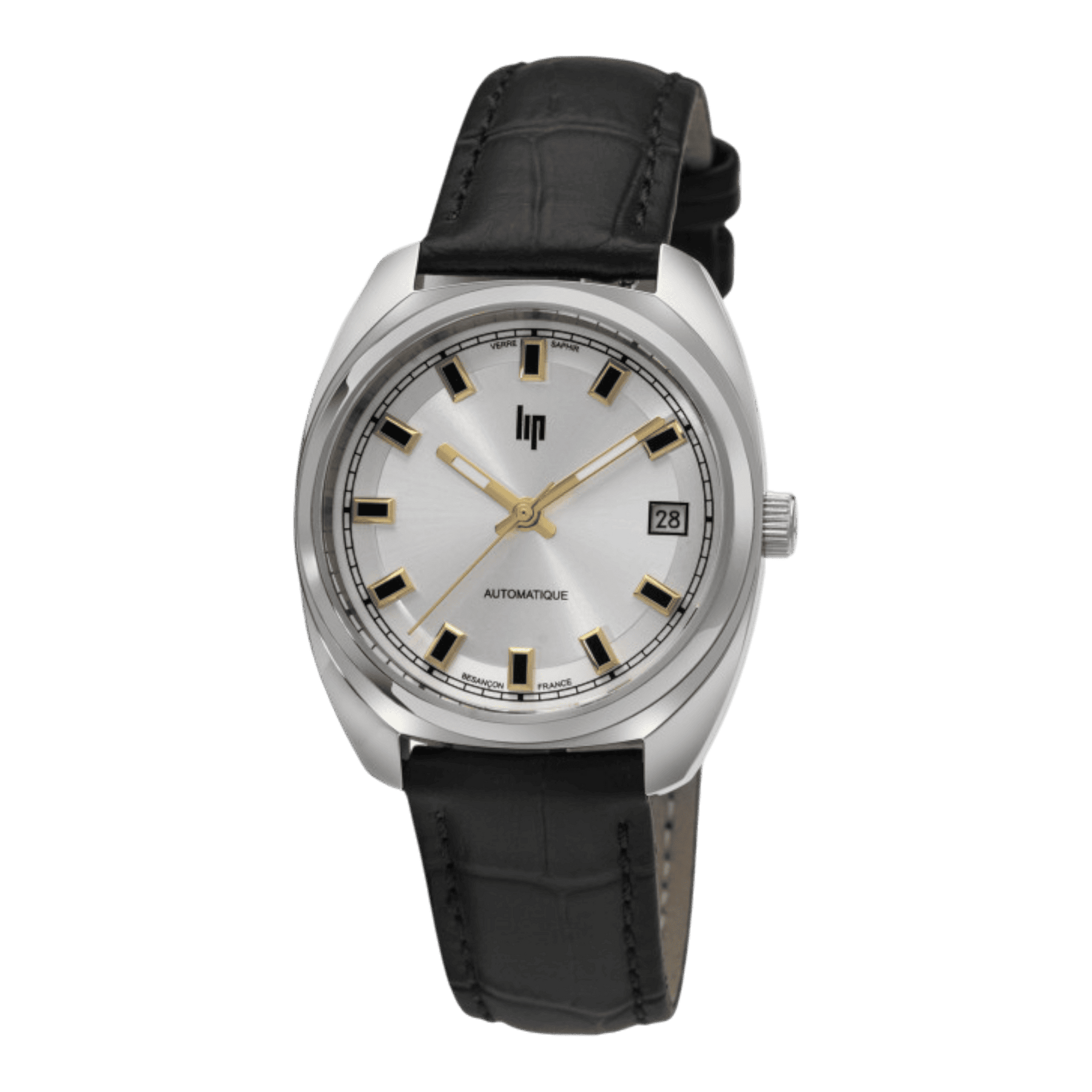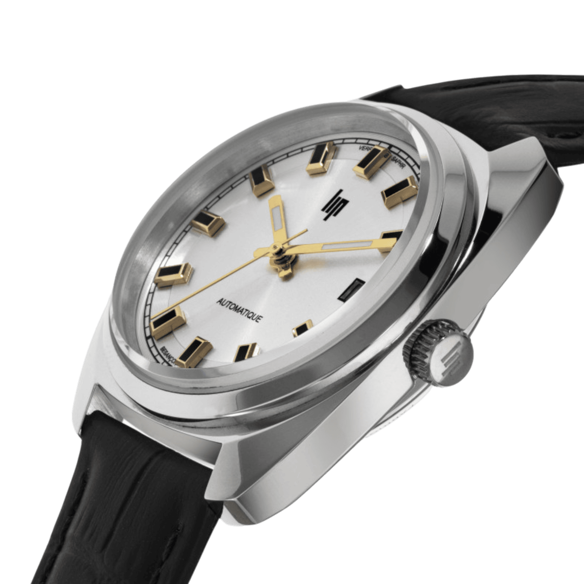 LIP Général de Gaulle Automatique – 35 mmL’élégance du patrimoine français. Fabriquée avec soin à Besançon, berceau historique de l’horlogerie française, la LIP Général de Gaulle Automatique 35 mm incarne la tradition, la précision et l’élégance intemporelle. Son boîtier doré poli de 35 mm, aux cornes raffinées, abrite un cadran blanc argenté soleillé d’une grande pureté, affichant les trois aiguilles et la date : la quintessence du minimalisme horloger. Montée sur un bracelet en cuir de vachette marron façon crocodile, surpiqué ton sur ton et doté d’une boucle ardillon dorée siglée LIP, cette montre séduit par son charme vintage revisité et sa présence discrète mais affirmée. Un héritage historique et techniqueL’histoire de la LIP Général de Gaulle est intimement liée à celle de la maison et de la France. En 1952, Fred Lip présente à l’Académie des sciences de Paris le premier prototype de montre-bracelet électrique au monde – une prouesse technologique issue du mouvement R27. Un symbole de raffinement et d’histoirePlus qu’un garde-temps, la Général de Gaulle Automatique est une pièce de collection qui incarne la précision française et l’élégance vintage. Elle séduit autant les passionnés d’horlogerie que ceux qui recherchent une montre chargée de sens, d’histoire et de distinction. |