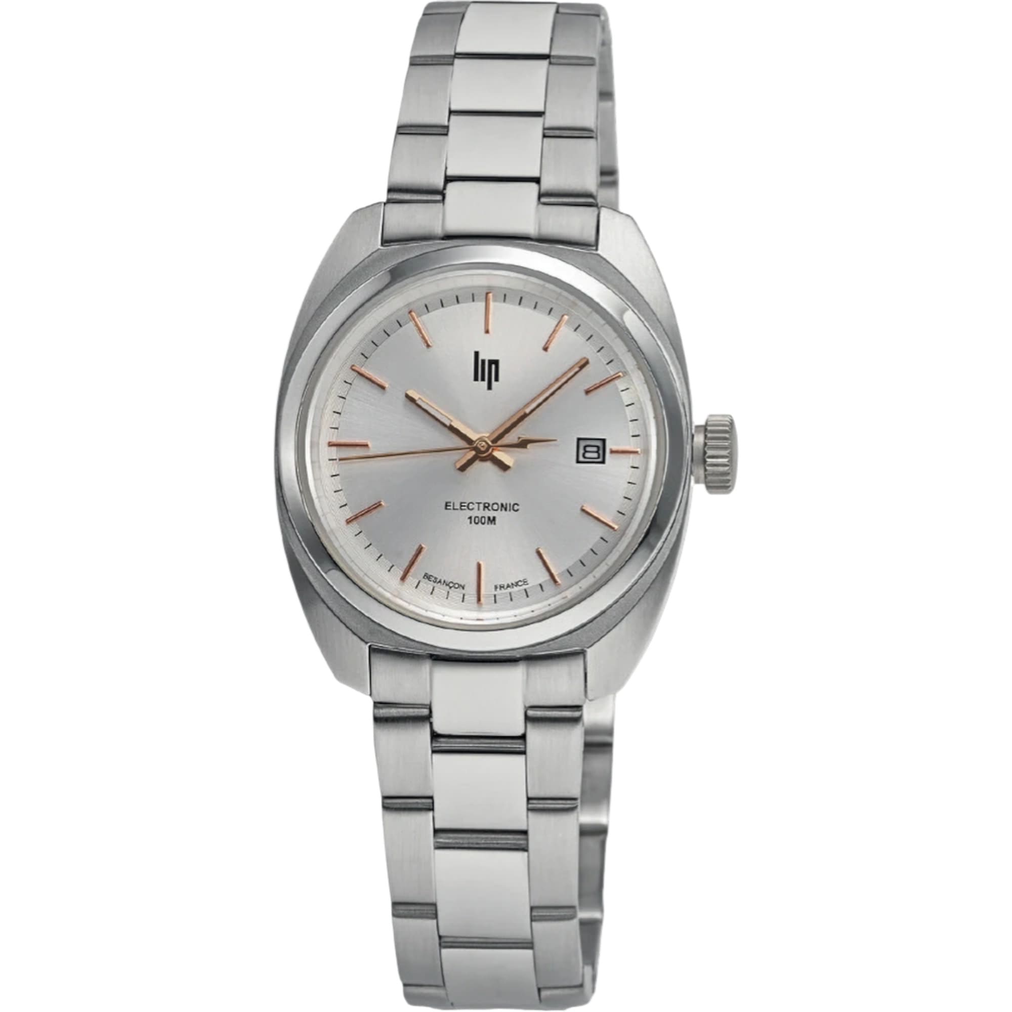 Montre LIP Général de Gaulle 671883 – 31 mmLa montre LIP Général de Gaulle 671883 rend hommage à un modèle emblématique conçu dans les années 1950. Avec sa forme tonneau caractéristique, elle incarne l’élégance intemporelle du style vintage français, tout en intégrant des performances modernes adaptées au quotidien. Dotée d’un boîtier en acier inoxydable de 31 mm, cette montre séduit par ses proportions équilibrées et son design raffiné. Elle est animée par un mouvement quartz Miyota avec fonction date, reconnu pour sa précision et sa fiabilité. Le cadran est protégé par un verre minéral, offrant une bonne résistance aux chocs du quotidien. Son bracelet en acier inoxydable assure confort, robustesse et durabilité, pour un porté agréable en toutes circonstances. Avec une étanchéité de 5 ATM (50 mètres), cette montre est adaptée à un usage courant et peut être portée sous la douche. Livrée avec une garantie internationale de 2 ans, la LIP Général de Gaulle 31 mm est idéale pour celles et ceux qui recherchent une montre élégante, fiable et au design rétro emblématique. |