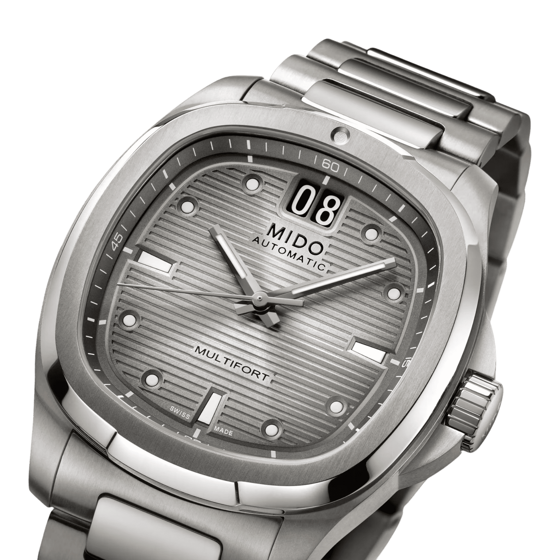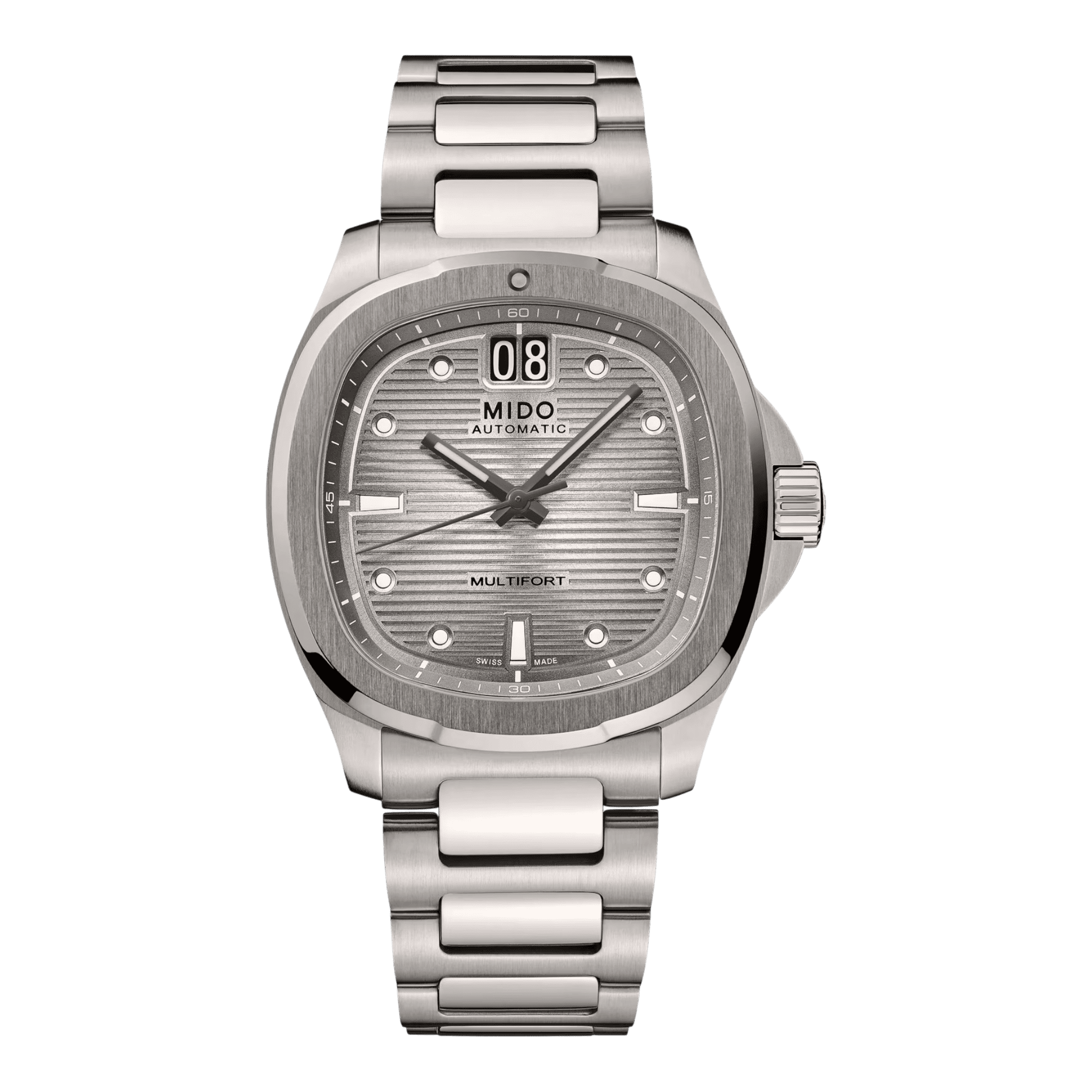 Mido Multifort TV Big Date Titanium – L’élégance légère et techniqueLa Mido Multifort TV Big Date Titanium réinvente une icône des années 70 avec un boîtier TV moderne en titane ultra-léger (39,2 x 40 mm). Son cadran texturé met en avant une grande date à 12h, signature audacieuse de cette montre suisse au design racé. Équipée du Calibre 80 avec 80 heures de réserve de marche et d’un spiral Nivachron™ anti-magnétique, elle allie performance, précision et confort. Protégée par un verre saphir anti-reflets et étanche à 100 mètres, cette Multifort TV Big Date se distingue par sa robustesse, sa modernité et sa légèreté exceptionnelle. Un garde-temps d’exception pour les amateurs de montres suisses à la fois techniques, élégantes et intemporelles. |