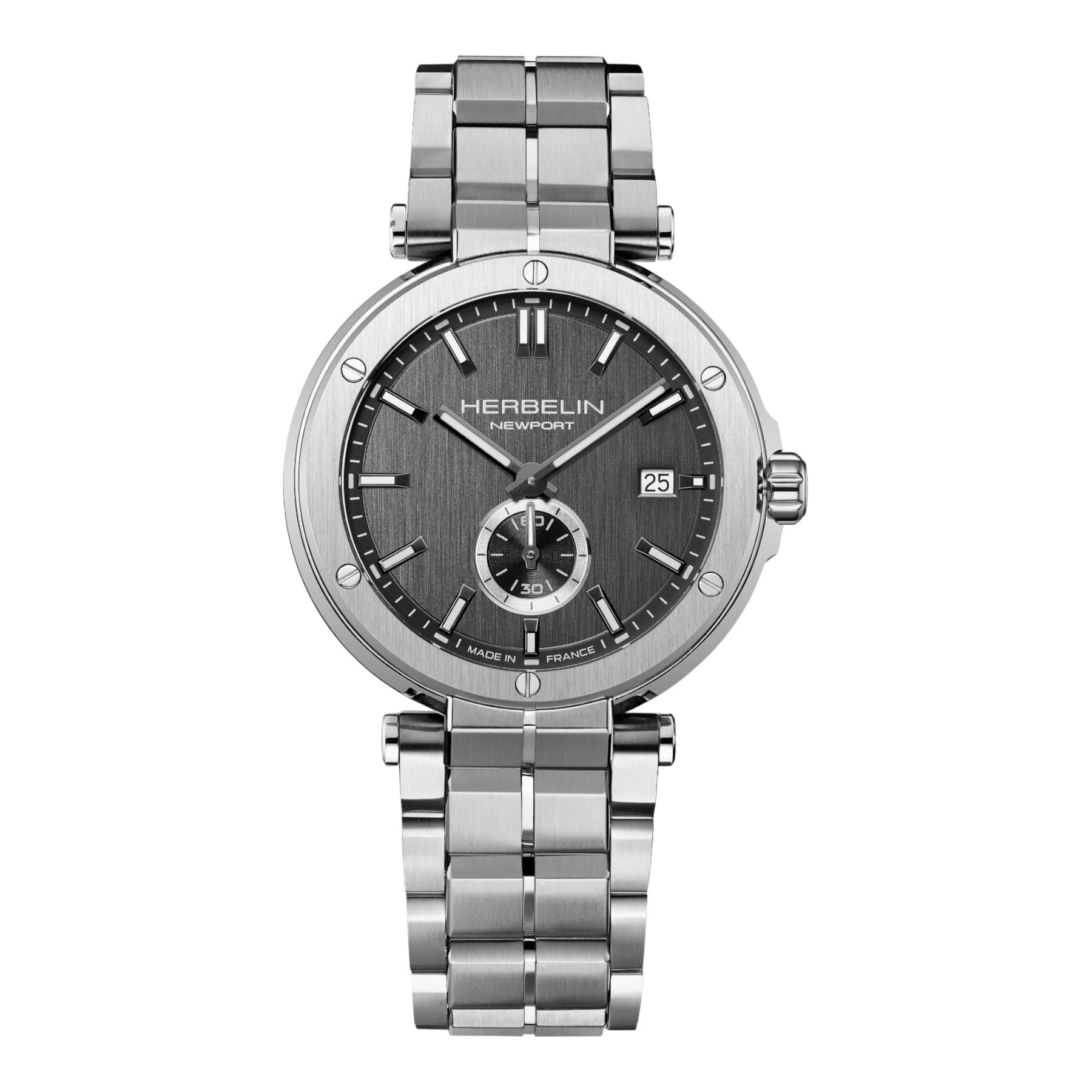 Herbelin Newport Quartz – Acier & Cadran Noir : la sobriété sportive à son apogéeLa Herbelin Newport Quartz Acier & Cadran Noir incarne l’identité sportive et contemporaine de la collection Newport. Son boîtier de 40,5 mm en acier inoxydable, alternant finitions brossées et polies, arbore les six vis décoratives emblématiques qui rappellent l’héritage maritime de la maison. Son cadran noir texturé, profond et élégant, offre une lisibilité parfaite grâce à ses index luminescents et à son guichet date positionné à 3h. La petite seconde à 6h, animée par le mouvement quartz suisse Ronda 6004.D, reflète la précision et la fiabilité qui caractérisent Herbelin. Pensée pour durer, cette Newport est équipée d’un verre saphir traité antireflet, d’une étanchéité de 100 mètres et d’un bracelet en acier massif doté d’une boucle déployante sécurisée. Une montre polyvalente, élégante et robuste, parfaite pour un usage quotidien comme pour les occasions habillées. Newport : l’élégance française aux accents marinsÀ la fois sobre, technique et moderne, cette Newport Acier & Noir perpétue plus de 30 ans de savoir-faire français. Un garde-temps raffiné au style sportif-chic, conçu pour ceux qui recherchent robustesse, précision et distinction. |