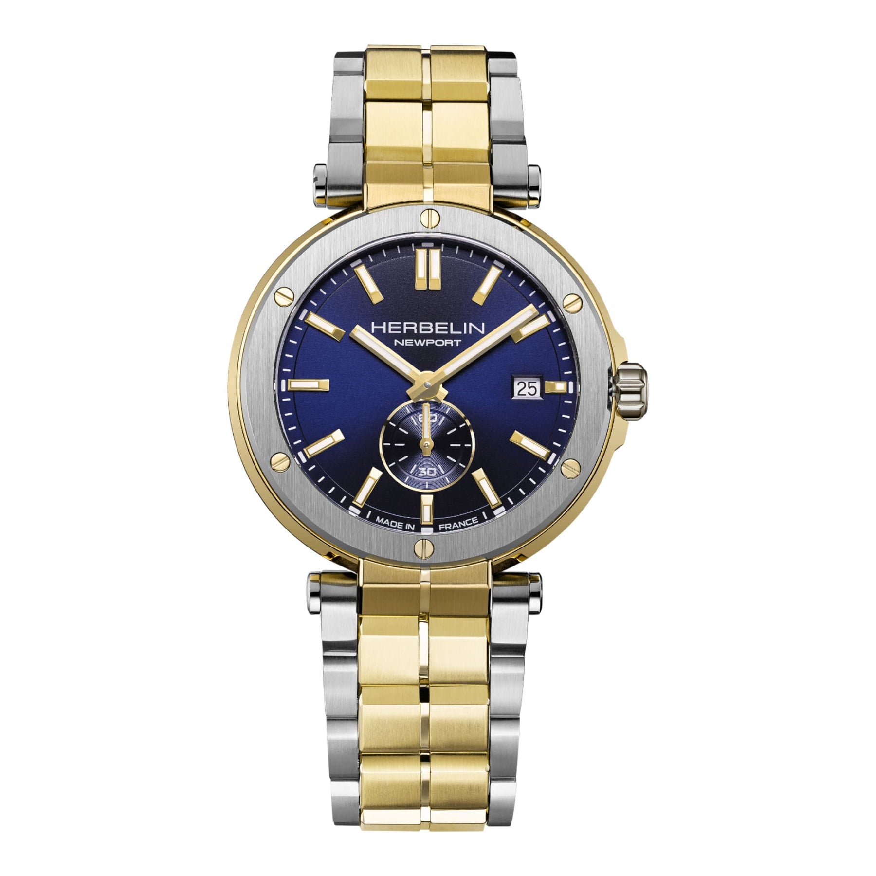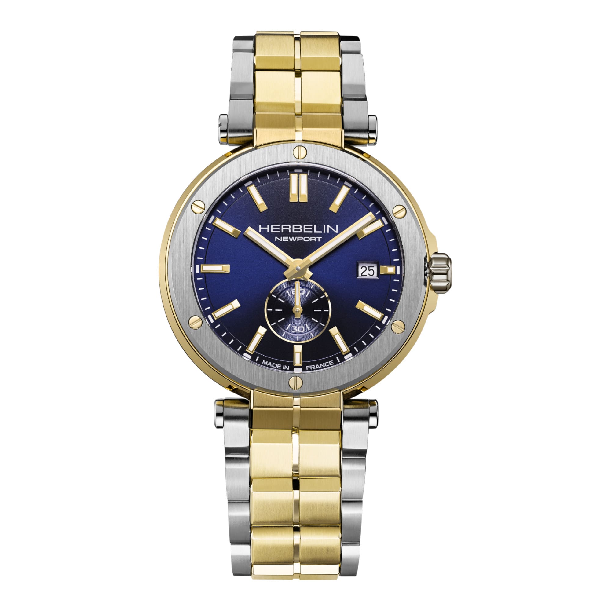 Herbelin Newport Quartz – Acier Bicolore & PVD Or : l’élégance maritime revisitéeLa Herbelin Newport Quartz Acier Bicolore & PVD Or incarne parfaitement l’ADN marin et raffiné de la maison française. Son boîtier de 40,5 mm en acier inoxydable 316L, sublimé par une lunette PVD or jaune, crée un contraste harmonieux qui renforce la signature visuelle emblématique de la collection Newport. Son cadran bleu profond, ponctué d’index lumineux et d’un guichet date à 3h, rappelle l’univers nautique tout en offrant une lisibilité moderne. À 6h, la petite seconde animée par le mouvement quartz suisse Ronda 6004.D témoigne de la précision et de la fiabilité propres à Herbelin. Conçue pour durer, cette Newport bénéficie d’un verre saphir antireflet et d’une étanchéité de 100 mètres, assurant robustesse et confort au quotidien. Son bracelet en acier bicolore, équipé d’une boucle déployante sécurisée, apporte polyvalence et élégance, s’adaptant aussi bien à un style professionnel qu’à des tenues plus habillées. L’esprit Newport : entre tradition française et style contemporainVéritable icône de la maison Herbelin, la Newport continue d’allier héritage marin, élégance moderne et savoir-faire horloger français. Une montre polyvalente et distinguée, pensée pour accompagner chaque moment de la journée. |