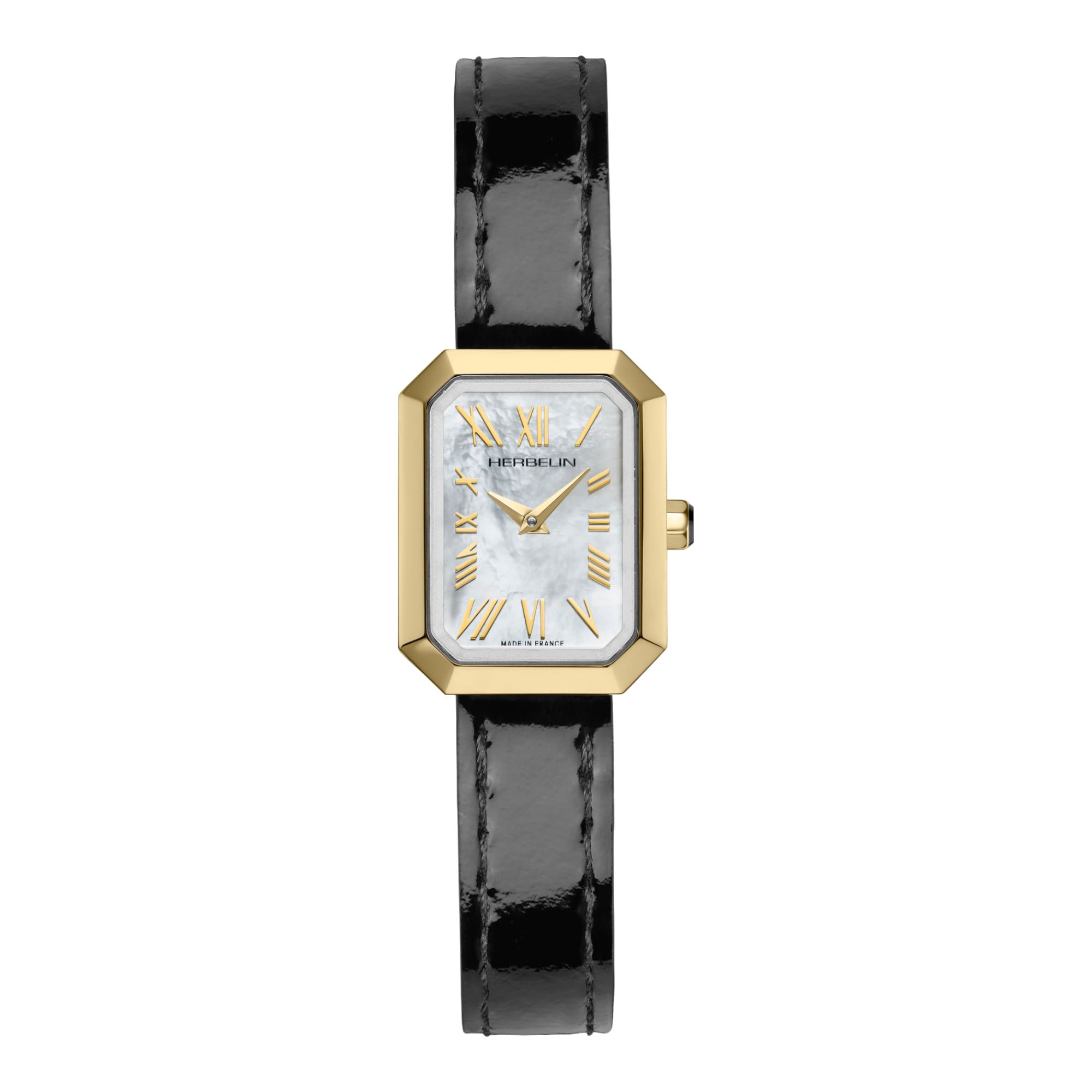 Herbelin Octogône – Quartz PVD Or Jaune & Nacre Blanche : la montre-bijou au charme éclatantLa Herbelin Octogône Quartz PVD Or Jaune & Nacre Blanche est une ode à l’élégance féminine. Son boîtier octogonal en acier inoxydable 316L, sublimé par un revêtement PVD or jaune, offre un éclat raffiné et contemporain. Il met en lumière un cadran en nacre blanche naturelle, dont les reflets changeants apportent douceur, sophistication et luminosité. D’une finesse remarquable de 6,4 mm, cette montre séduit par sa silhouette délicate. Protégée par un verre saphir inrayable et étanche à 50 mètres, elle allie subtilité et robustesse au quotidien. En son cœur, le mouvement quartz suisse Ronda 751 assure une précision irréprochable, fidèle aux standards horlogers de la Maison. Son bracelet en cuir noir brillant, doté d’une boucle ardillon traditionnelle, renforce son allure de montre-bijou intemporelle. Chaque détail exprime le savoir-faire français de Herbelin, qui façonne depuis plus de 50 ans des montres élégantes et raffinées. Octogône : la quintessence de l’élégance féminine selon HerbelinAvec son éclat doré, ses lignes géométriques et sa nacre lumineuse, cette Octogône Quartz incarne la rencontre entre style, technicité et raffinement, offrant à chaque poignet une touche de pure élégance. |