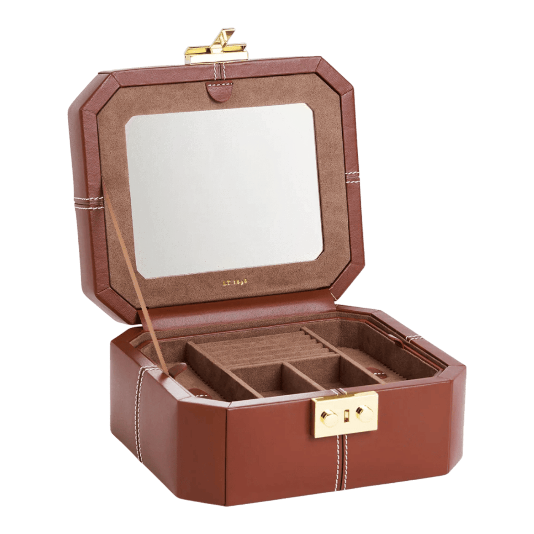 Cette petite boîte à bijoux haut de gamme signée Le Tanneur incarne tout le savoir-faire artisanal et l’héritage du luxe à la française. Confectionnée en cuir recyclé de vachette, elle allie raffinement, durabilité et conscience écologique, dans le respect des valeurs de la Maison.