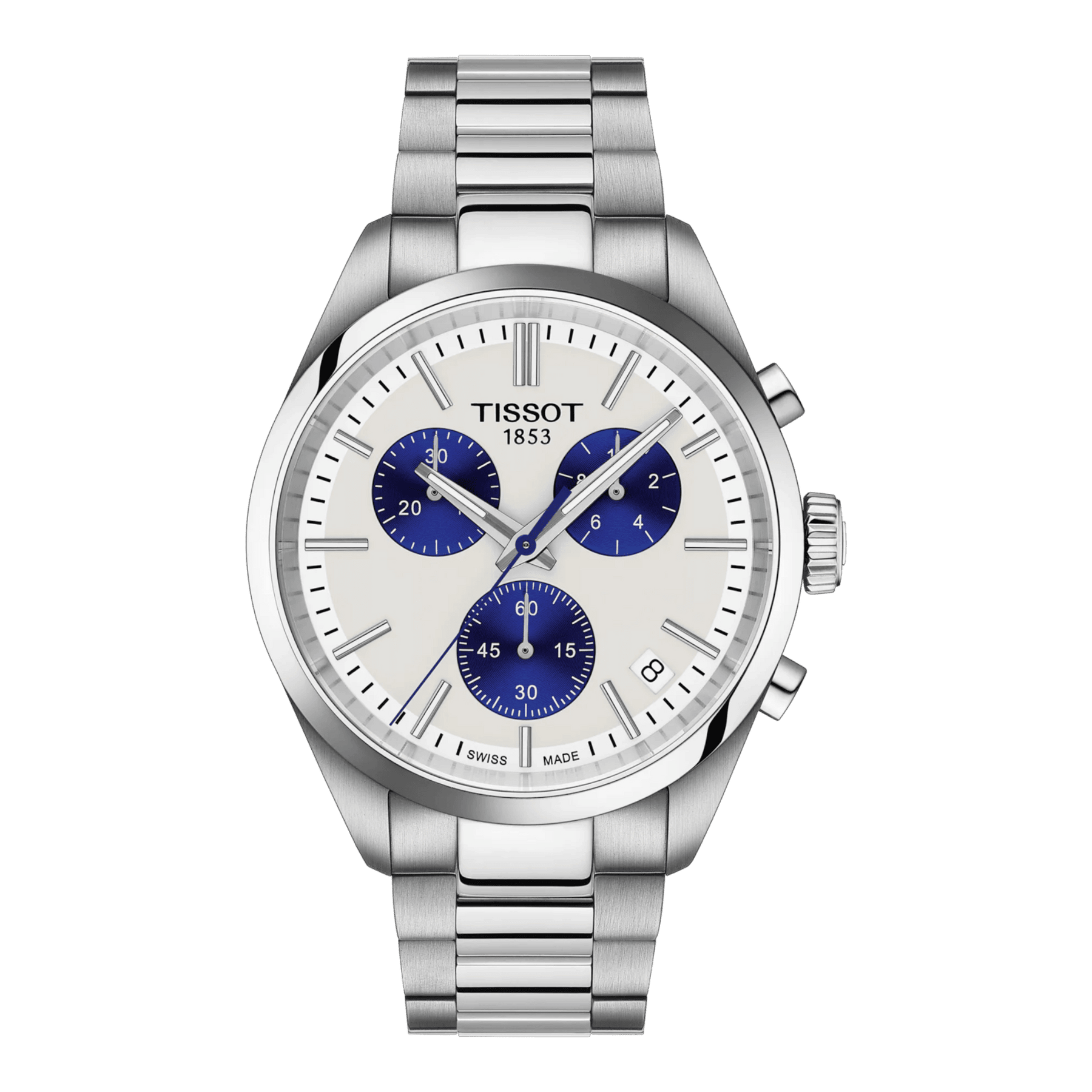 Tissot PR 100 Chronograph – L’alliance parfaite entre sport et éléganceLa collection Tissot PR 100 Chronograph incarne à merveille le style sportif chic qui fait la renommée de la marque suisse. Ces chronographes à quartz associent performance, précision et raffinement à travers une conception soignée et des finitions de haute qualité. Proposés dans différentes déclinaisons de couleurs, ces modèles se distinguent par leur bracelet en acier inoxydableorné d’une rangée centrale polie, offrant un éclat raffiné qui renforce leur allure élégante. Le guichet de date à disque blanc et la trotteuse classique apportent une lecture claire et équilibrée du cadran. Au cœur de chaque montre, le mouvement à quartz suisse G10.212 assure une précision remarquable et une robustesse durable, soutenues par une étanchéité jusqu’à 10 bar (100 mètres / 330 pieds). Grâce au revêtement Super-LumiNova® appliqué sur les aiguilles, la lisibilité reste optimale même en faible luminosité, confirmant le caractère fonctionnel et polyvalent de cette collection. La Tissot PR 100 Chronograph s’adresse à ceux qui recherchent une montre élégante et performante, adaptée aussi bien au quotidien qu’aux occasions spéciales. |