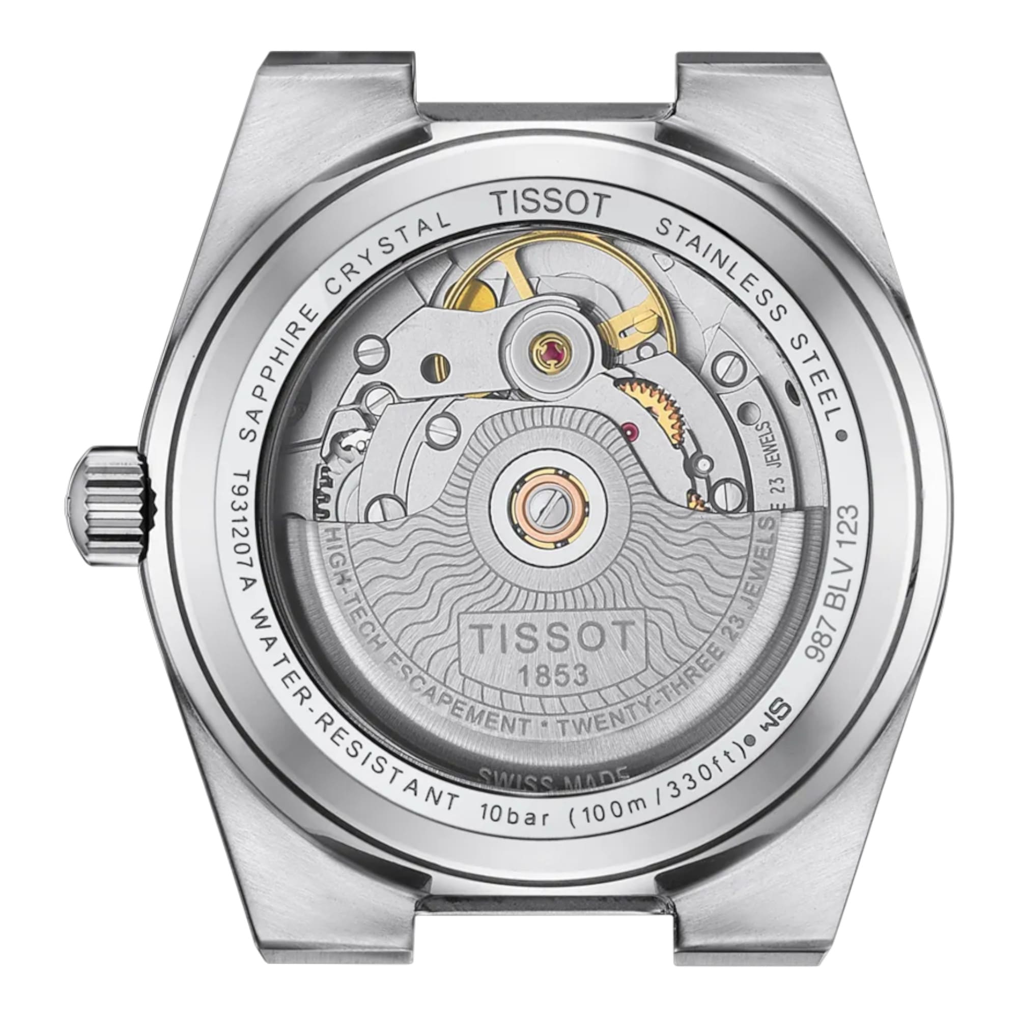 Sous son apparence élégante bat le mouvement automatique Powermatic 80, symbole du savoir-faire Tissot. Ce calibre offre une réserve de marche impressionnante de 80 heures, tout en garantissant précision et fiabilité dans le temps. Protégé par une glace saphir antireflet double face, le cadran révèle toute sa profondeur, tandis que le fond transparent en verre minéral permet d’admirer la finesse du mouvement.