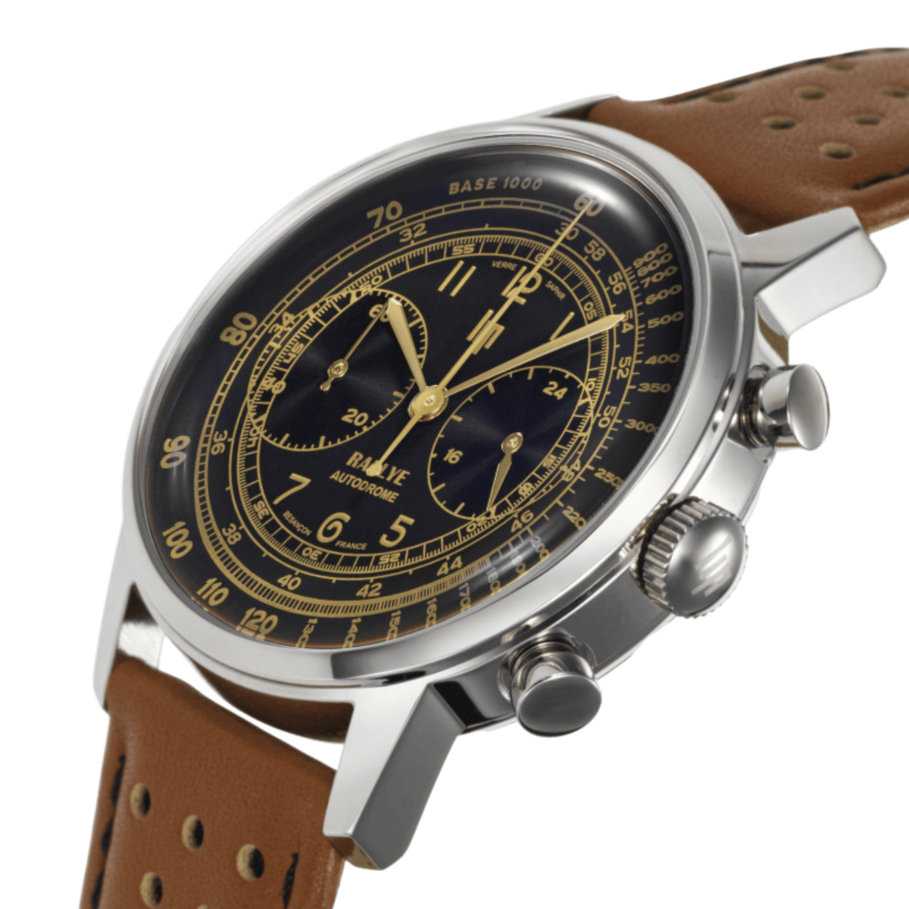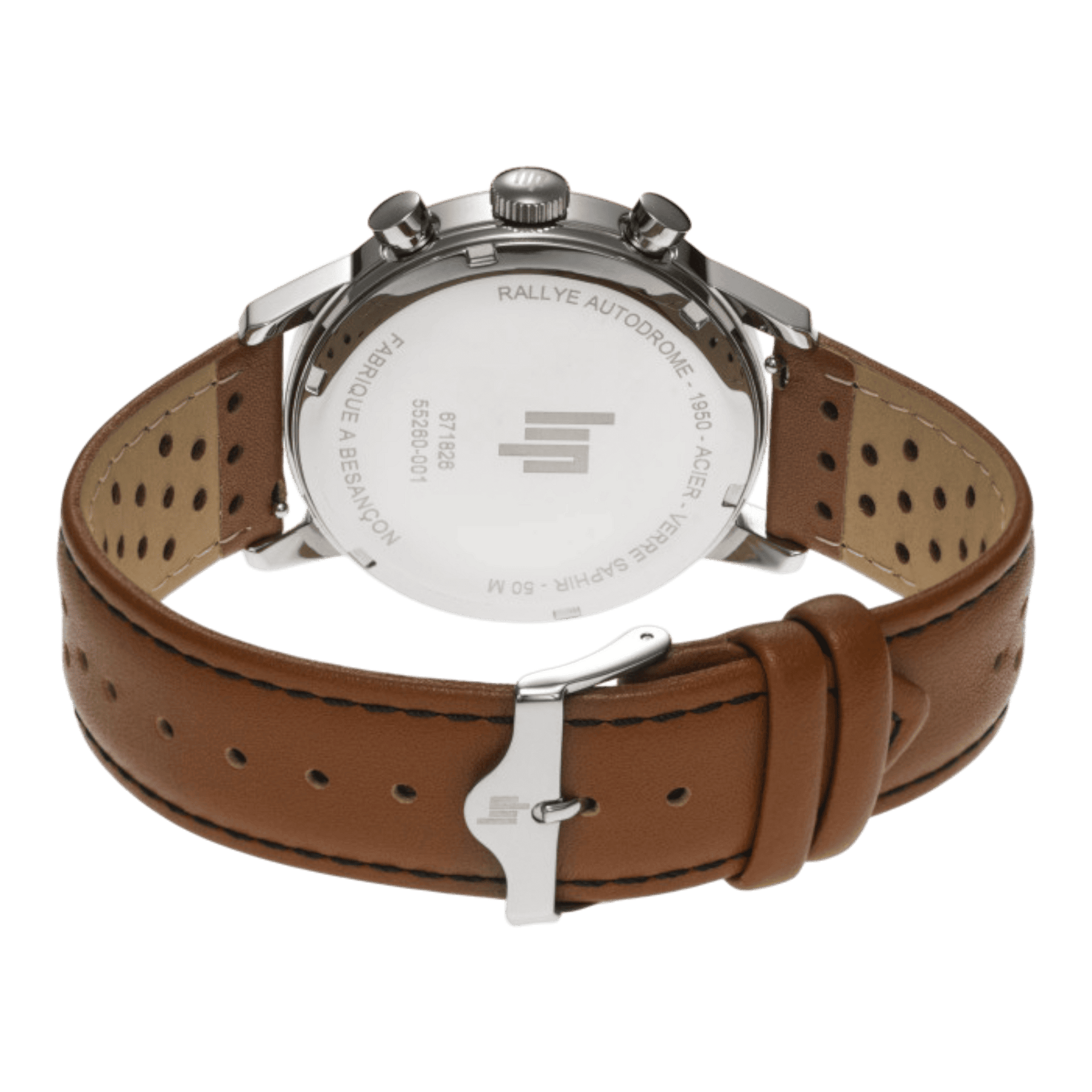 LIP Rallye Méca-Quartz Chronographe – 40 mmL’esprit de la course, la précision française. Inspirée de l’univers automobile et du légendaire dynamisme de Fred Lip, la LIP Rallye Méca-Quartz Chronographe 40 mm incarne l’alliance parfaite entre design sportif, innovation horlogère et fabrication française. Un design racé et fonctionnelLe boîtier en acier inoxydable 316L poli de 40 mm abrite un mouvement méca-quartz hybride, combinant la précision du quartz et la sensation mécanique du chronographe traditionnel. Un bracelet au look racing affirméLa montre est équipée d’un bracelet en cuir noir perforé surpiqué , inspiré des gants et volants automobiles, offrant à la fois style et robustesse. Une montre conçue pour durerSon fond vissé garantit une étanchéité jusqu’à 5 ATM, tandis que la qualité de son assemblage à Besançon témoigne du savoir-faire horloger français. |