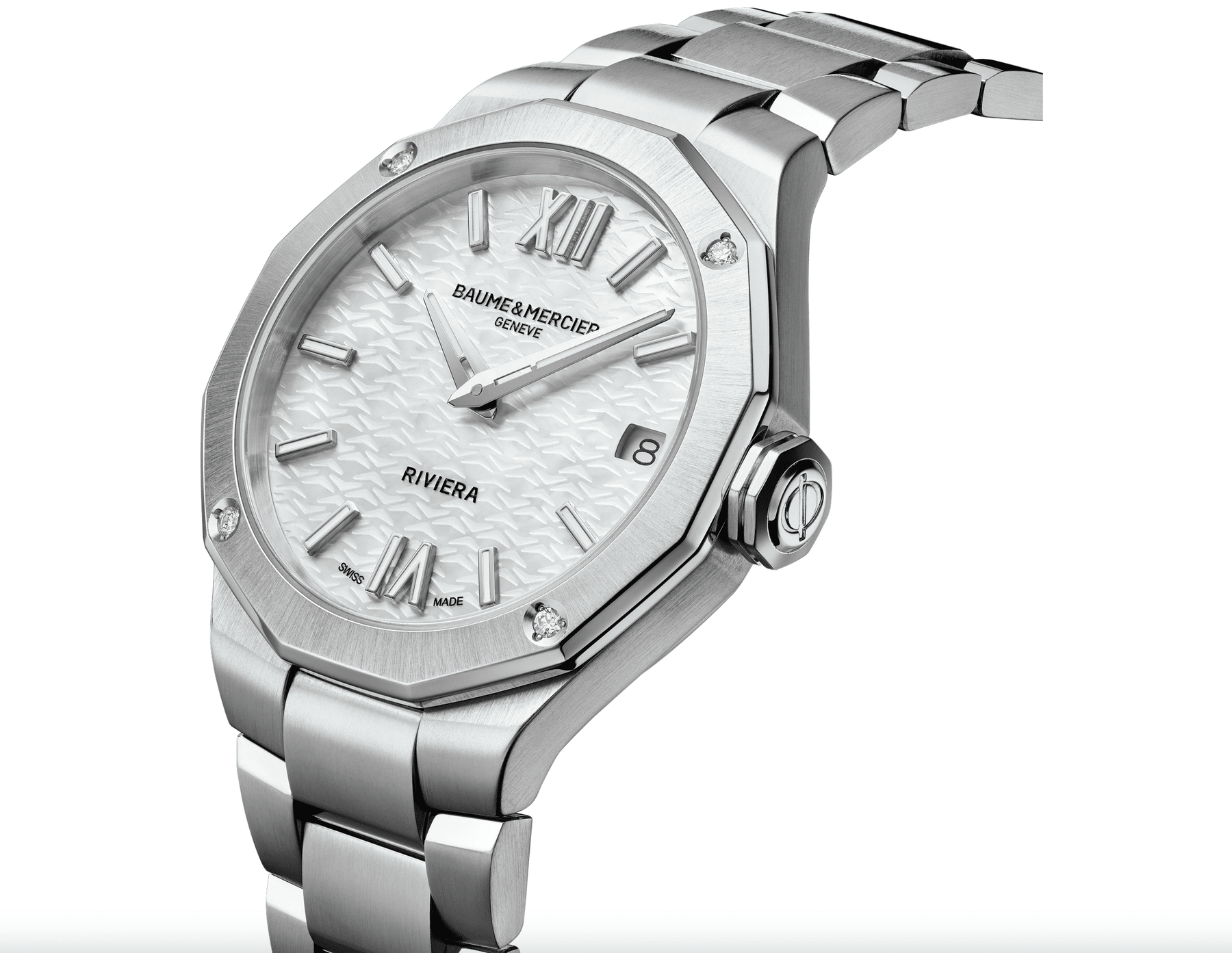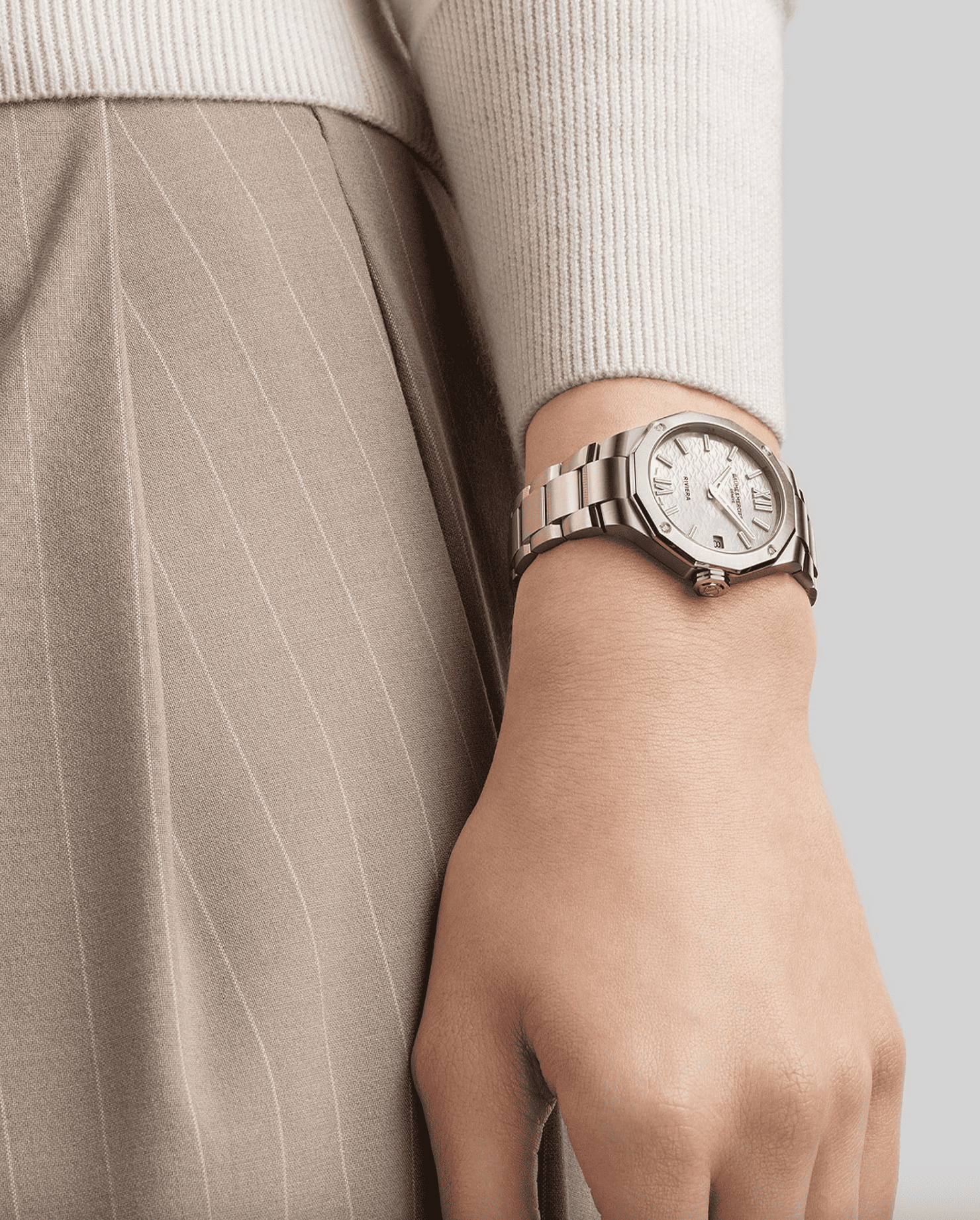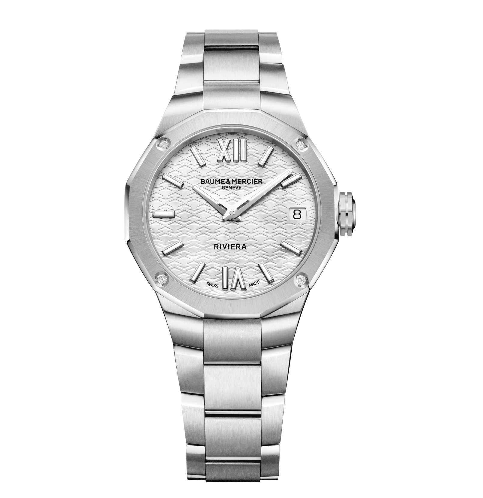 | Propulsée par un mouvement quartz Swiss Made, cette Riviera séduit par son cadran en nacre blanche de culture et sa lunette ornée de quatre diamants étincelants. Associée à un bracelet métal, elle offre une présence lumineuse et sophistiquée au poignet. Un garde-temps pensé pour les femmes au style assumé et à la personnalité forte. | |