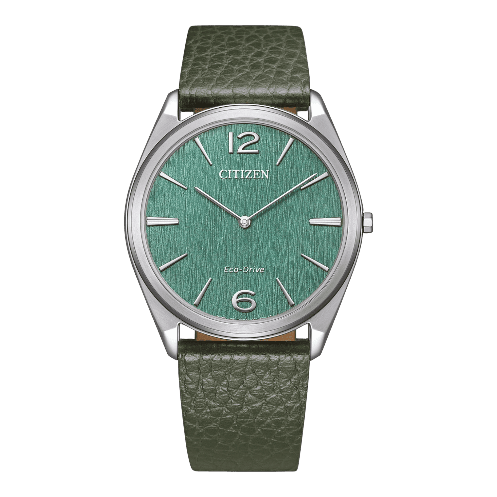 Citizen Eco-Drive G872 – Montre élégante acier & cuir vert, cadran vert 38,4 mmDescription longue optimisée SEOLa Citizen Eco-Drive G872 en cuir vert est une montre élégante et originale, conçue pour ceux qui souhaitent allier finesse, modernité et distinction. Son boîtier en acier inoxydable argenté de 38,4 mm (épaisseur ultraslim de 4,71 mm) lui confère une silhouette fine et raffinée, idéale au quotidien comme pour les occasions plus habillées. Le tout est complété par un bracelet en cuir vert doté d’une boucle ardillon, pour un style affirmé et confortable. Son cadran vert, parfaitement lisible, combine chiffres arabes et index linéaires, offrant une présentation claire et harmonieuse. La montre est animée par le mouvement solaire Eco-Drive calibre G872, une technologie de haute précision fonctionnant sans changement de pile et offrant une réserve d’énergie pouvant atteindre 210 jours, avec une précision remarquable de ±15 secondes par mois. Le cadran est protégé par un verre saphir résistant aux rayures, garantissant une excellente durabilité. Son fond de boîte vissé témoigne de la qualité de fabrication et renforce la robustesse de la montre. Grâce à son étanchéité de 3 bar, elle résiste aux éclaboussures et à l’humidité légère, ce qui la rend idéale pour un usage quotidien. Moderne, élégante et pleine de caractère, la Citizen Eco-Drive G872 en cuir vert et cadran vert est un choix parfait pour celles et ceux qui souhaitent une montre fine, fiable et singulière. | |