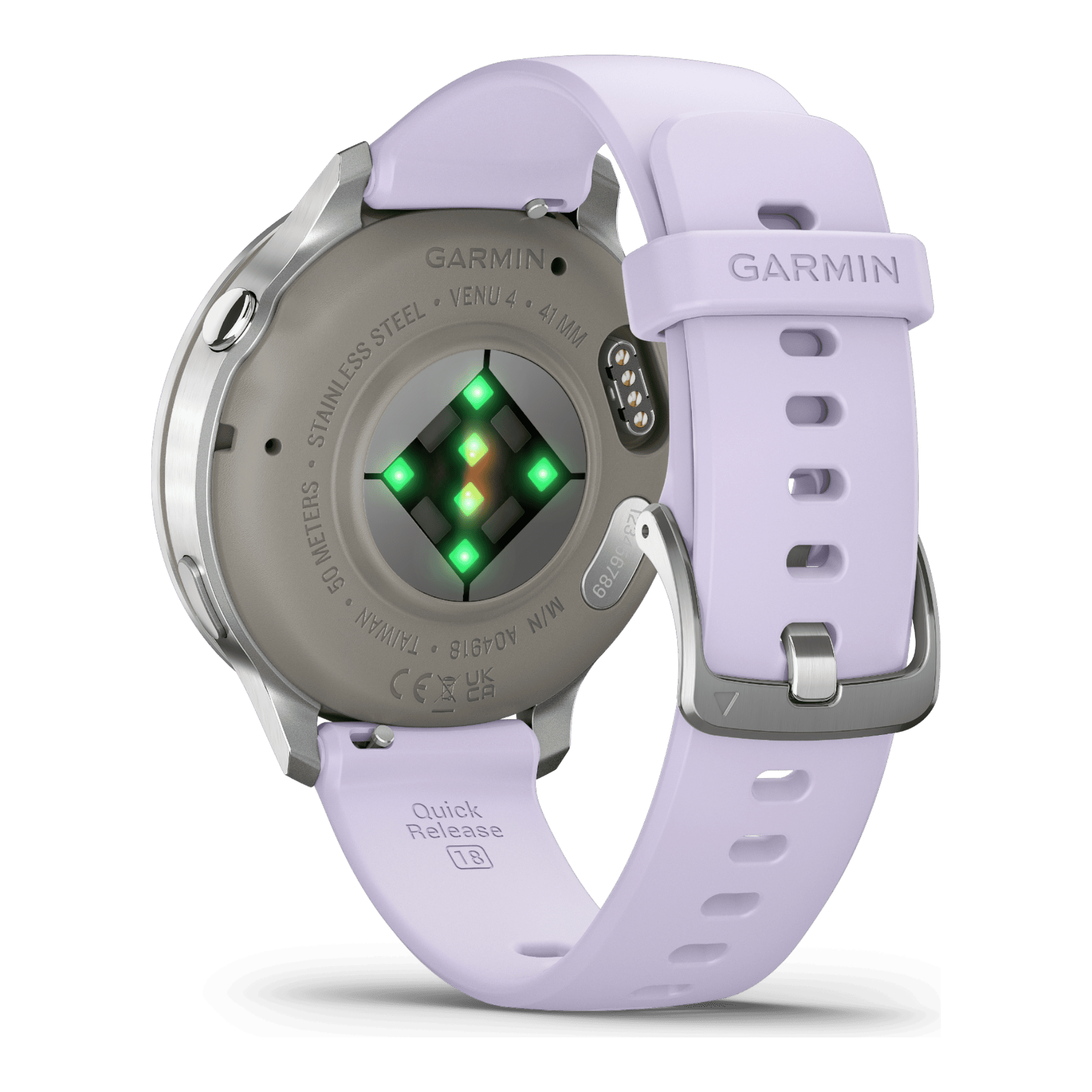 Garmin Venu® 4 – Votre alliée bien-être au quotidienMontre connectée forme & santé avec écran AMOLED, boîtier métal et lampe LED intégréeLa Garmin Venu® 4 incarne la nouvelle génération de montres connectées conçues pour l’équilibre, la santé et la performance. Élégante, moderne et intelligente, elle allie un design premium à un éventail complet de fonctions santé, sport et connectivité. Que vous cherchiez à mieux comprendre votre corps, à suivre vos entraînements ou simplement à améliorer votre quotidien, la Venu 4 devient votre coach personnel — au poignet. Design premium et confort absoluAvec son boîtier en métal raffiné (disponible en 41 mm ou 45 mm) et son écran AMOLED 1,4″ ultra-lumineux, la Venu 4 séduit par sa clarté et son élégance. L’affichage haute résolution permet une lecture parfaite en plein soleil comme en intérieur, tandis que les polices et couleurs personnalisables vous permettent d’adapter l’esthétique à votre style. Une compréhension inédite de votre corpsLa Venu 4 va bien au-delà du simple suivi d’activité : elle offre une analyse complète de votre santé pour vous aider à adopter un mode de vie plus équilibré.