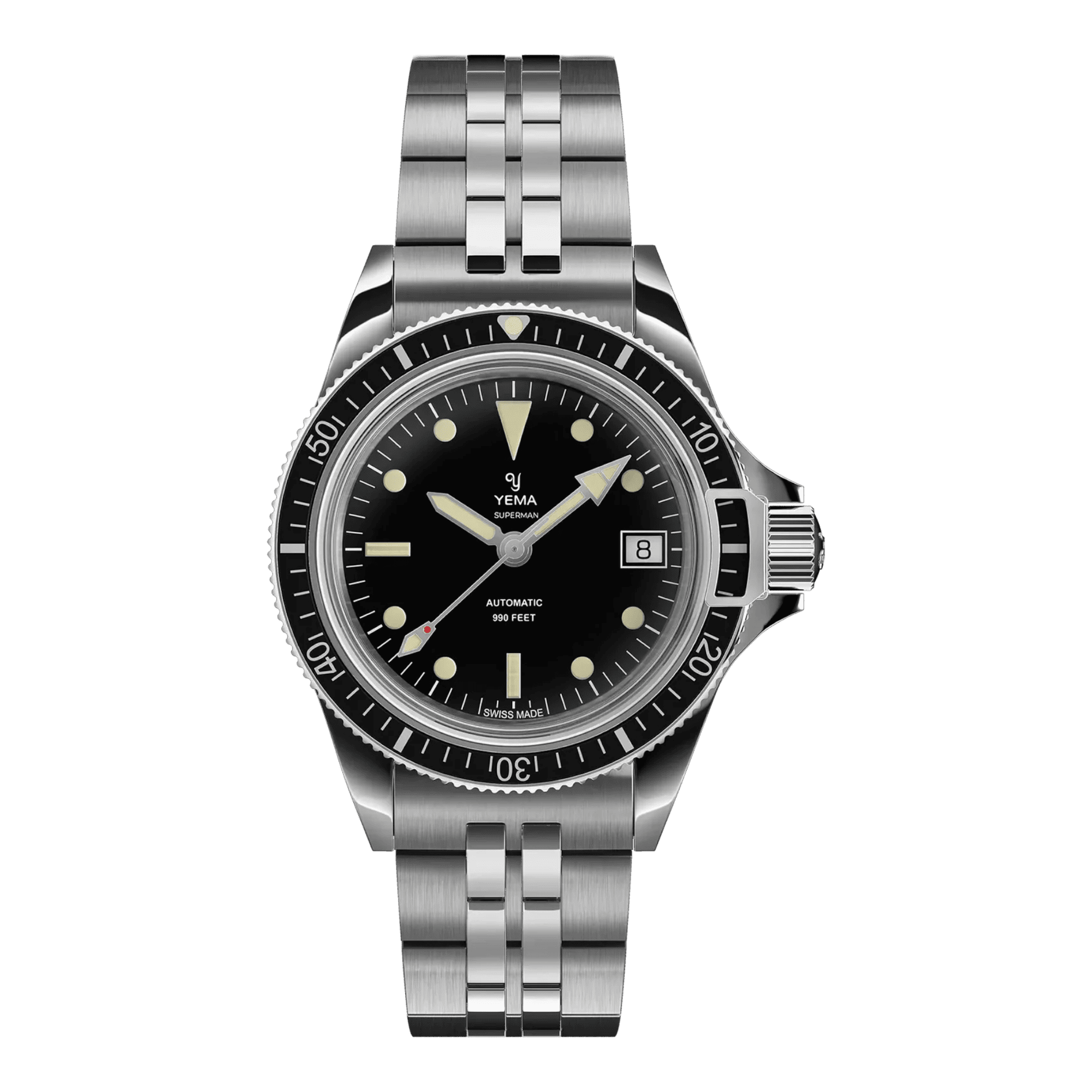 YEMA SUPERMAN SWISS EDITION – L’HÉRITAGE RÉINVENTÉFidèle à l’ADN du modèle original des années 1970, la nouvelle Superman Swiss Edition incarne l’excellence horlogère suisse tout en conservant les codes iconiques qui ont forgé sa légende. Conçue et assemblée à Bienne (Suisse), cette édition inédite reprend les éléments distinctifs de la référence historique 53.00.16 : boîtier en acier « 990 FEET » à cornes droites, lunette rétro en aluminium, verre bombé et trotteuse emblématique en forme de pelle. Dotée du calibre suisse Sellita SW200-1, reconnu pour sa fiabilité et sa précision, cette Superman modernisée reste fidèle à ses racines, en intégrant les caractéristiques incontournables d’une véritable montre de plongée. Son bloque-lunette breveté, signature technique de YEMA depuis 1963, empêche toute rotation accidentelle sous l’eau, tandis que son cadran imprimé et ses aiguilles iconiques renforcent son esthétique intemporelle. L’attention portée aux détails se retrouve jusque dans le fond de boîte repensé, embelli par un traitement microbillé, ainsi que dans le bracelet acier Heritage, fidèle réédition du design des années 70. Enfin, le revêtement Super-LumiNova Grade A garantit une lisibilité optimale, même dans l’obscurité. Avec cette édition Swiss Made, YEMA signe une réinterprétation authentique et raffinée de son modèle phare, à la croisée de l’héritage et de l’innovation. |