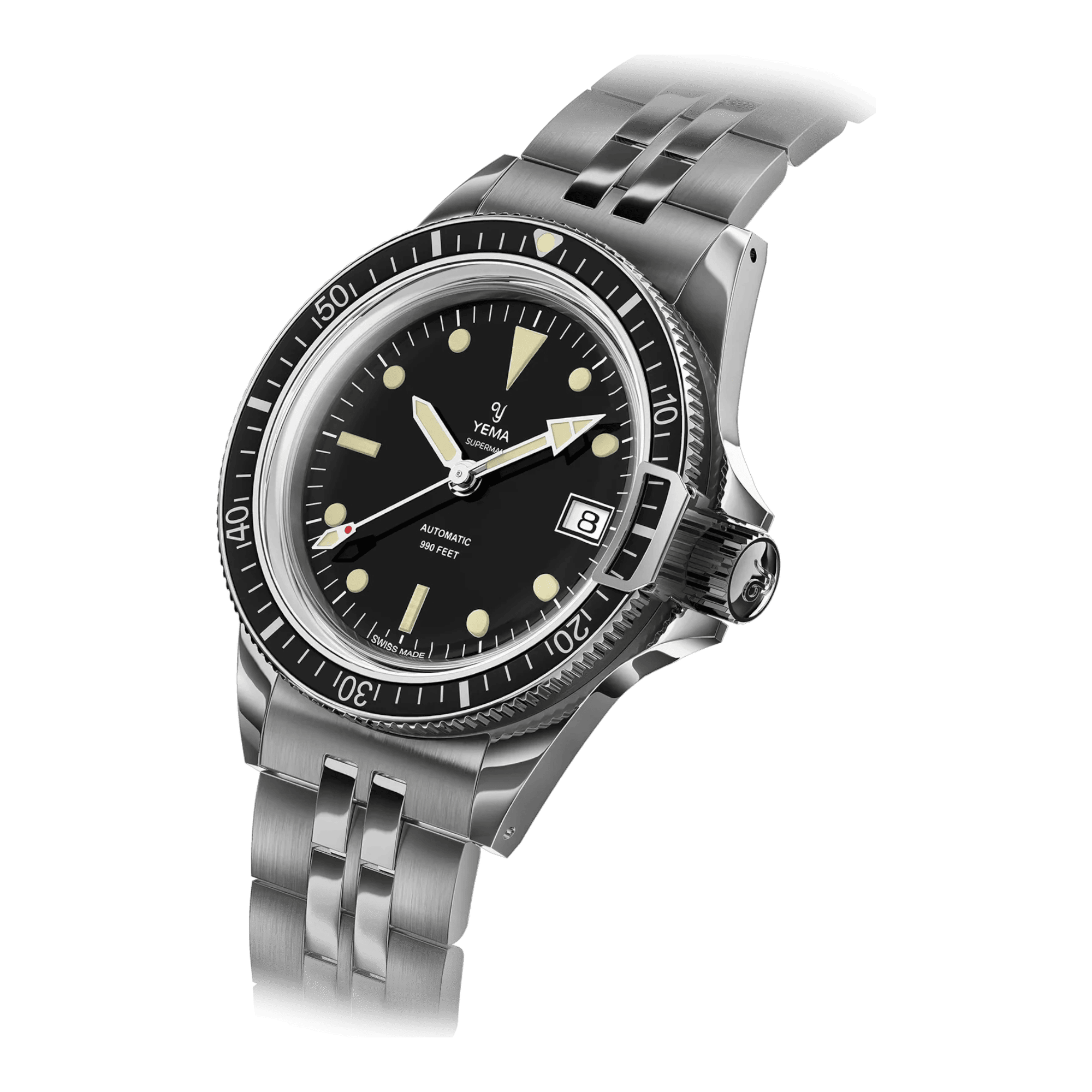 Acier inoxydable 316L avec effet brossé vertical Finitions améliorées, rendu plus qualitatif suite à un travail de polissage affiné LUNETTE Lunette de plongée unidirectionnelle en céramique avec graduation 0-60 min Repère luminescent à 12h traité en Super-LumiNova Grade A COURONNE Couronne vissée avec logo YEMA embossé |