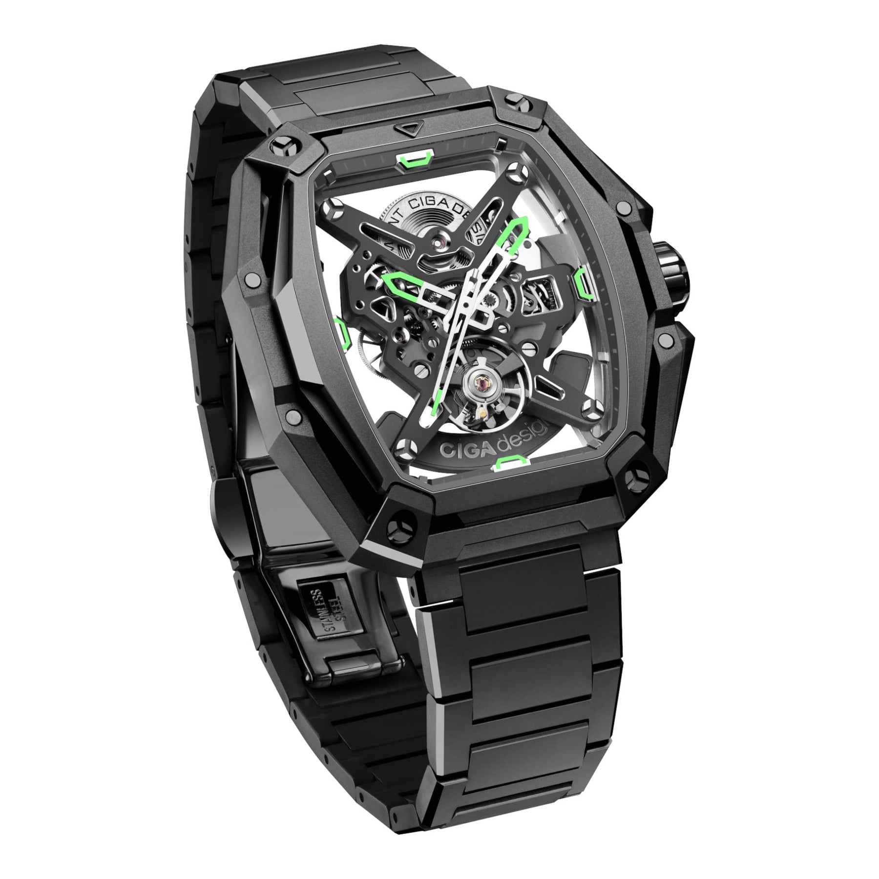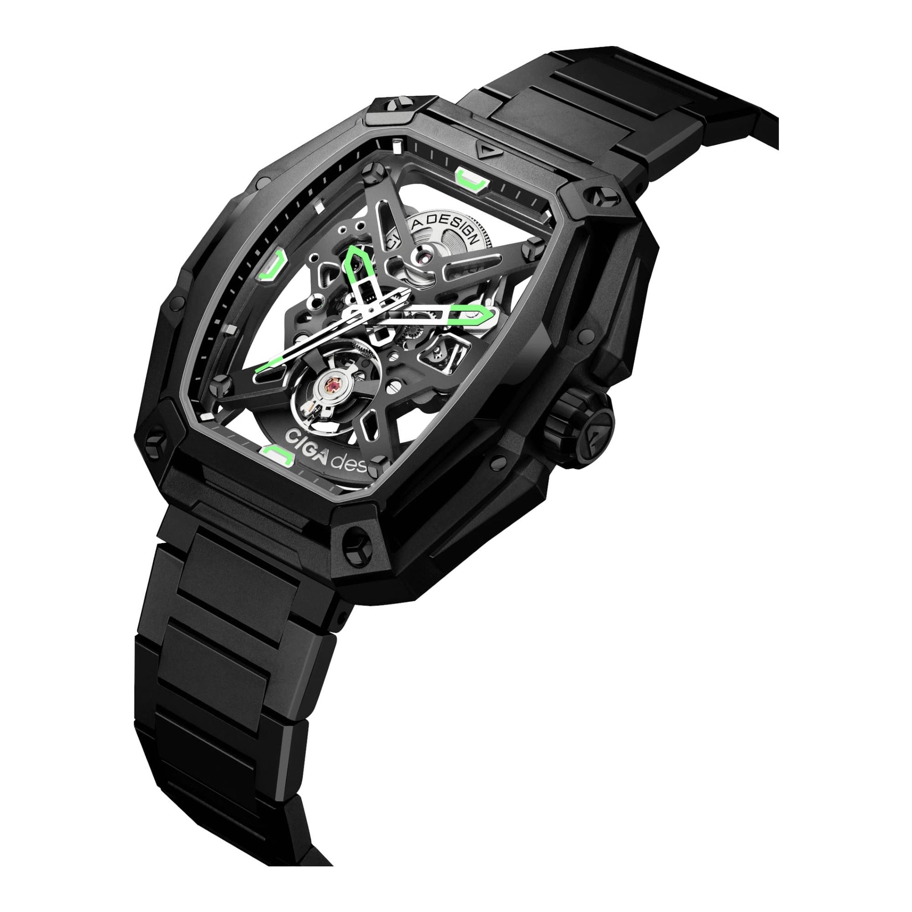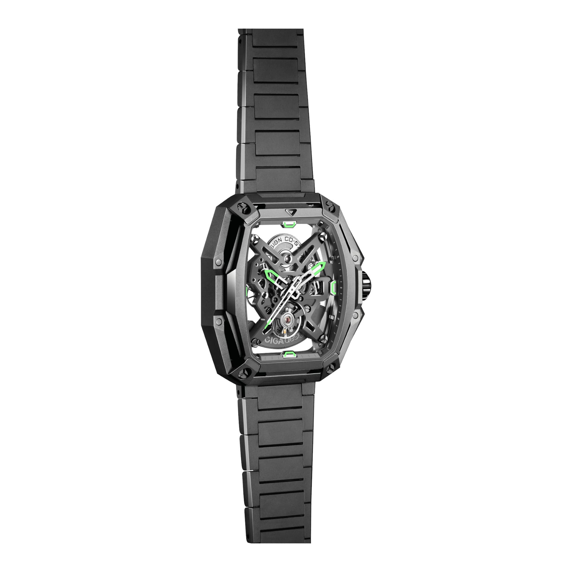 Inspirée par la précision d’un chasseur et l’esprit d’aventure, la CIGA Design X Series Hunter est une montre squelette qui repousse les limites de l’horlogerie contemporaine. Conçue autour du calibre automatique CD-07, cette pièce incarne la puissance, la transparence et la maîtrise mécanique dans un boîtier octogonal à trois niveaux, au design audacieux et géométrique.