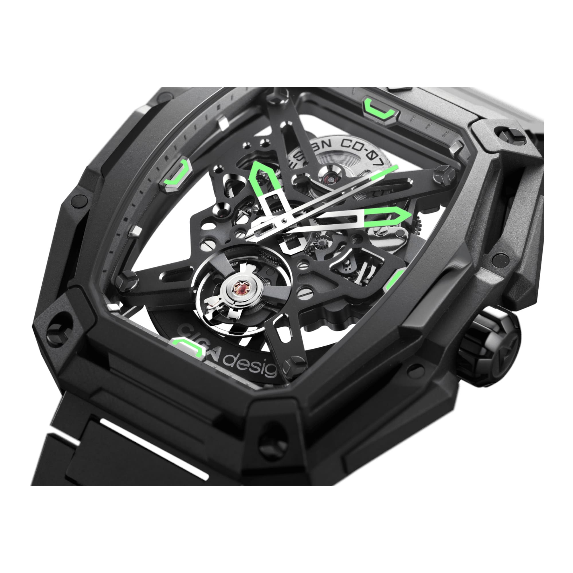 • Mouvement CD-07 : un calibre automatique interne, développé sur 90 jours de perfectionnement et soumis à des tests rigoureux.
