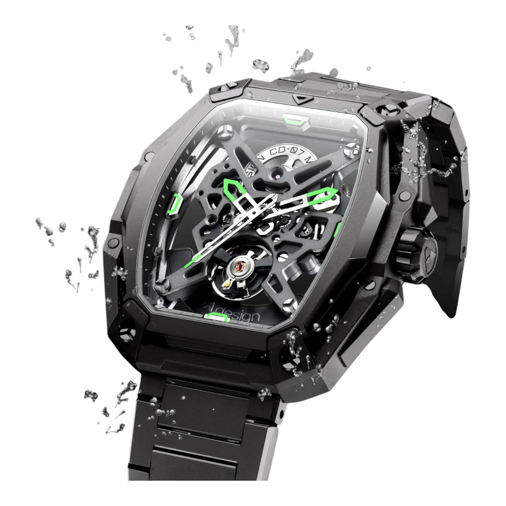 CIGA Design X Series Hunter – Calibre CD-07Quand la précision rencontre l’audaceInspirée par la précision d’un chasseur et l’esprit d’aventure, la CIGA Design X Series Hunter est une montre squelette qui repousse les limites de l’horlogerie contemporaine. Conçue autour du calibre automatique CD-07, cette pièce incarne la puissance, la transparence et la maîtrise mécanique dans un boîtier octogonal à trois niveaux, au design audacieux et géométrique. Un squelette d’exception
