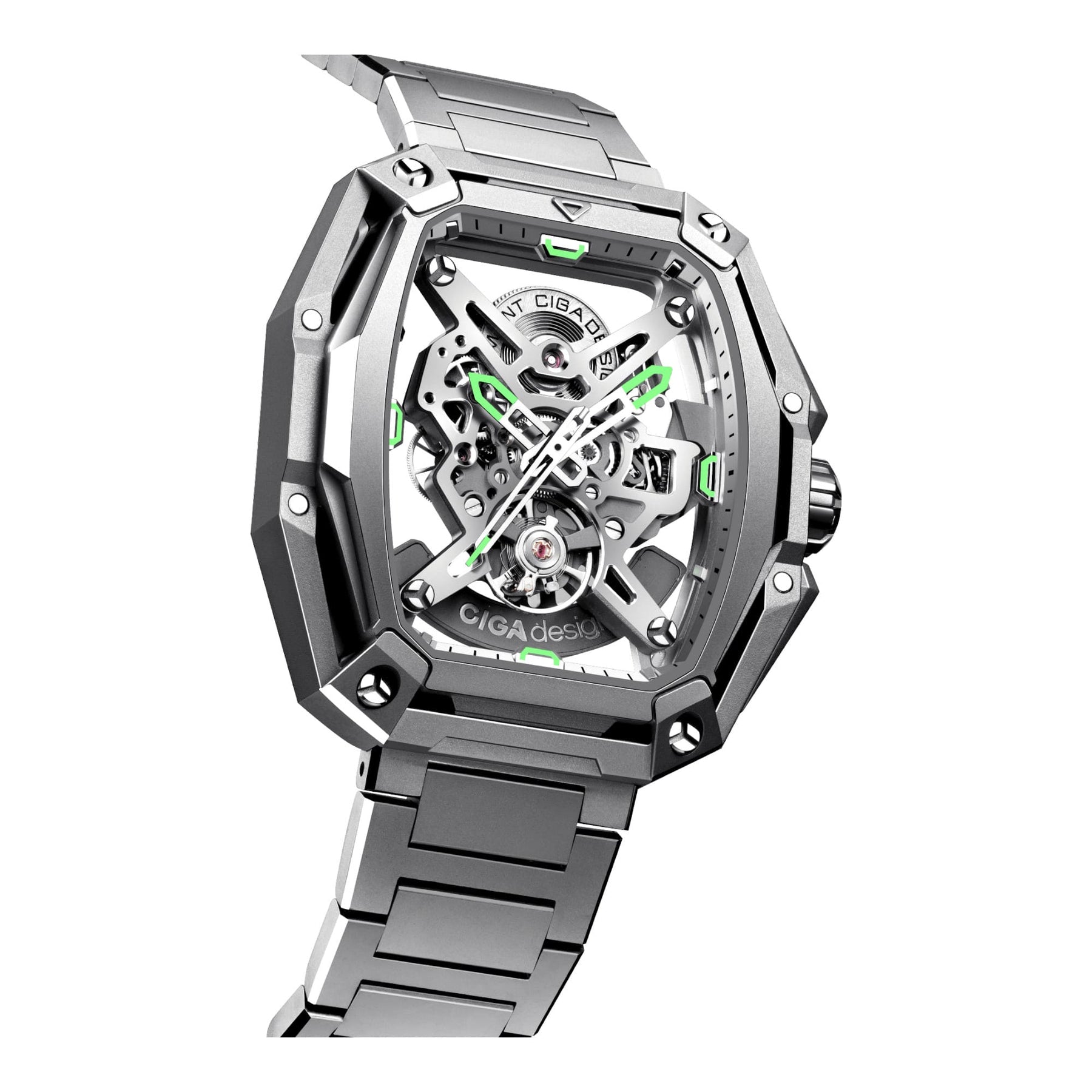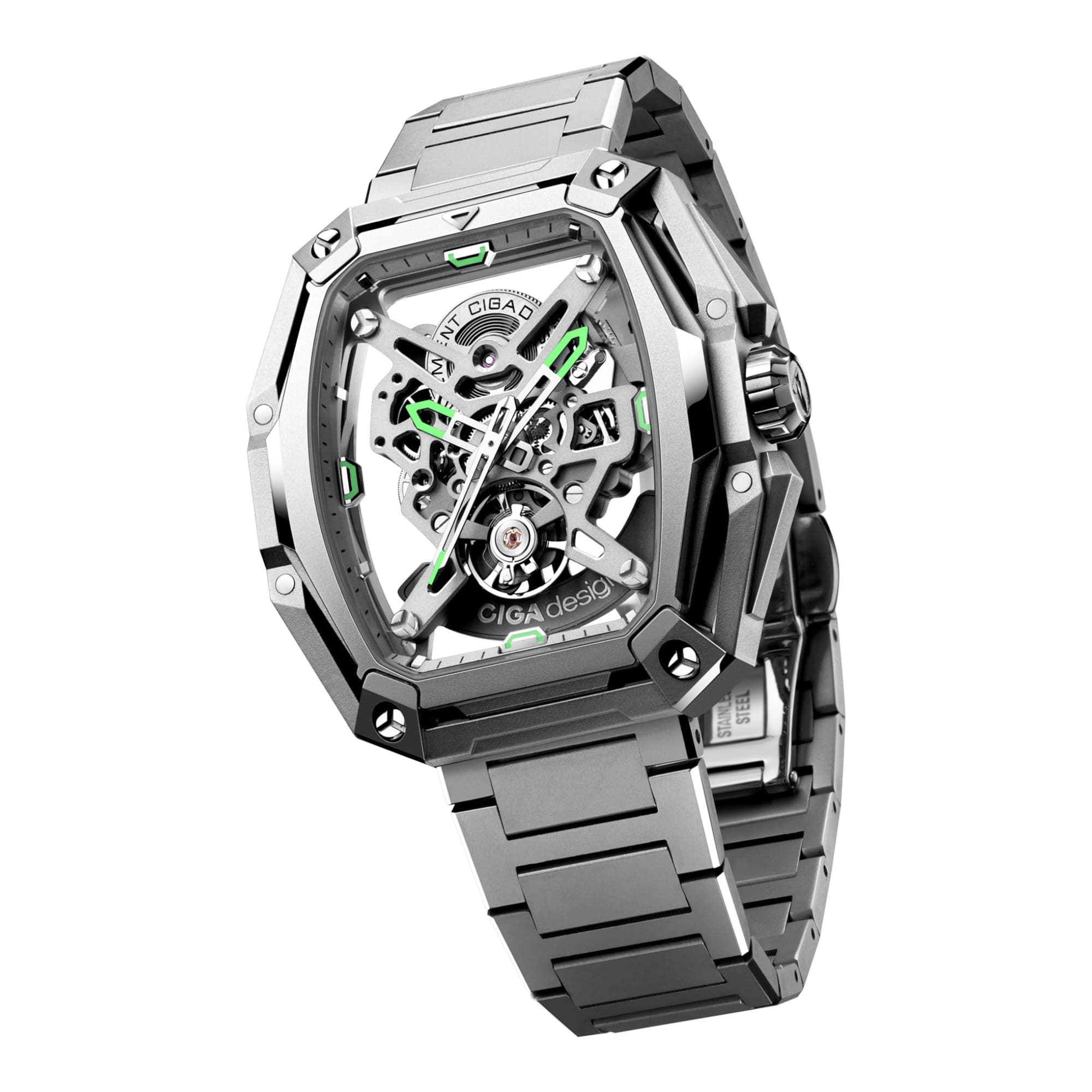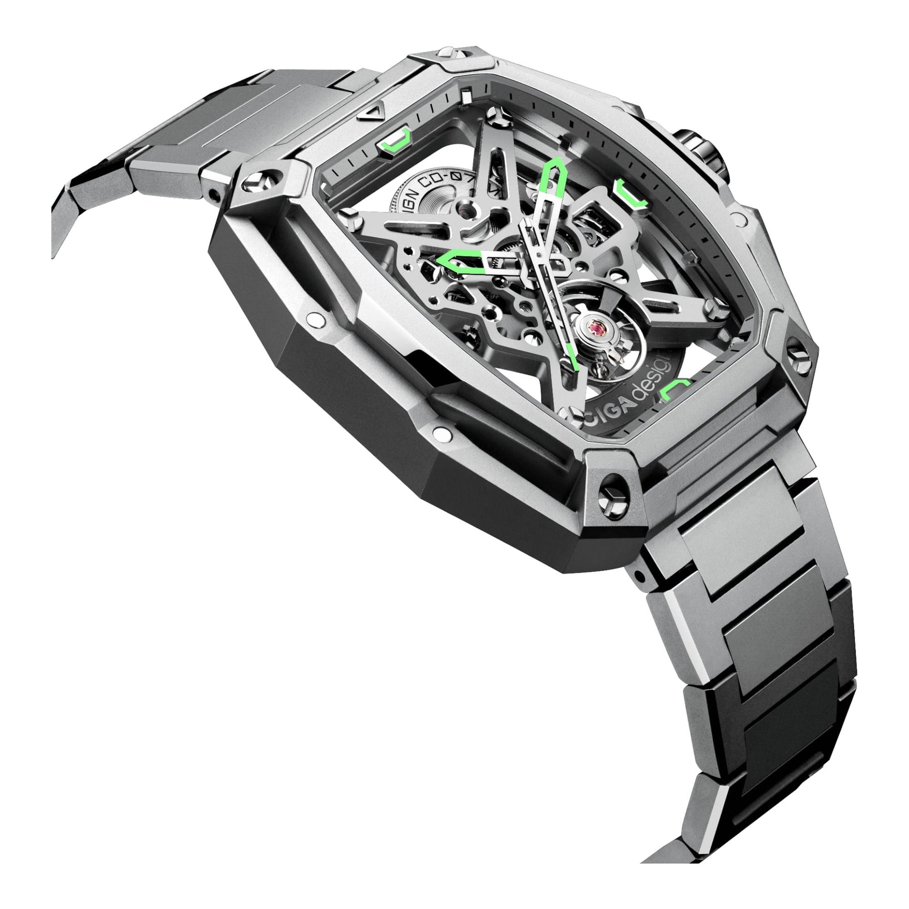 Inspirée par la précision d’un chasseur et l’esprit d’aventure, la CIGA Design X Series Hunter est une montre squelette qui repousse les limites de l’horlogerie contemporaine. Conçue autour du calibre automatique CD-07, cette pièce incarne la puissance, la transparence et la maîtrise mécanique dans un boîtier octogonal à trois niveaux, au design audacieux et géométrique.